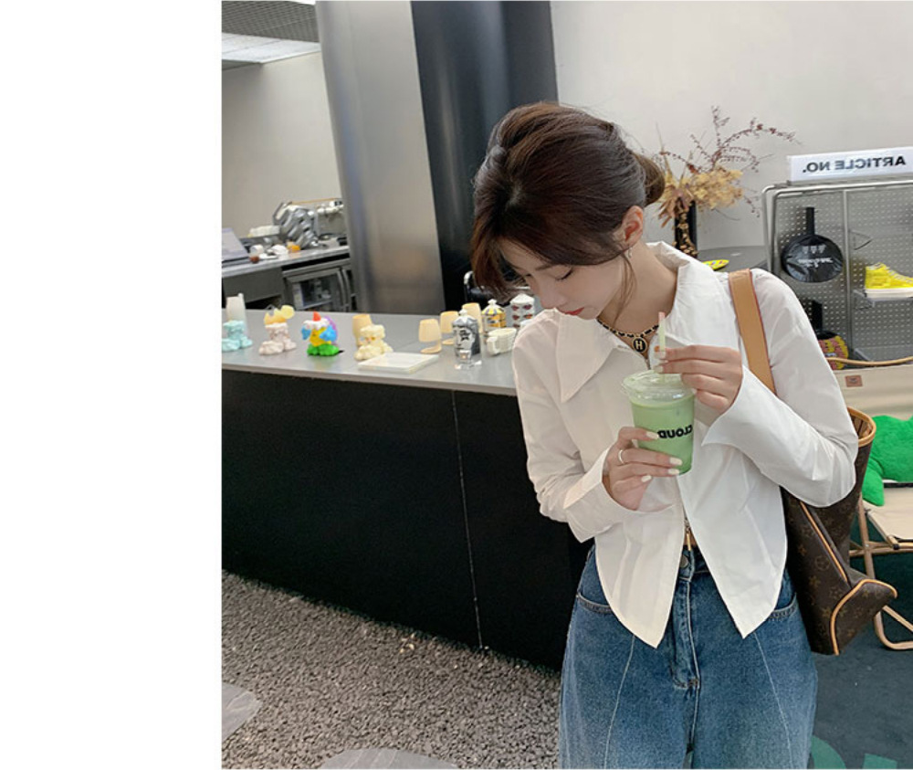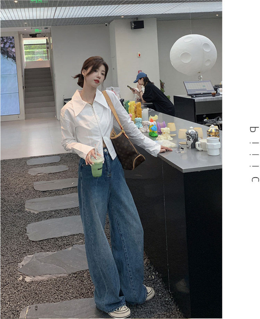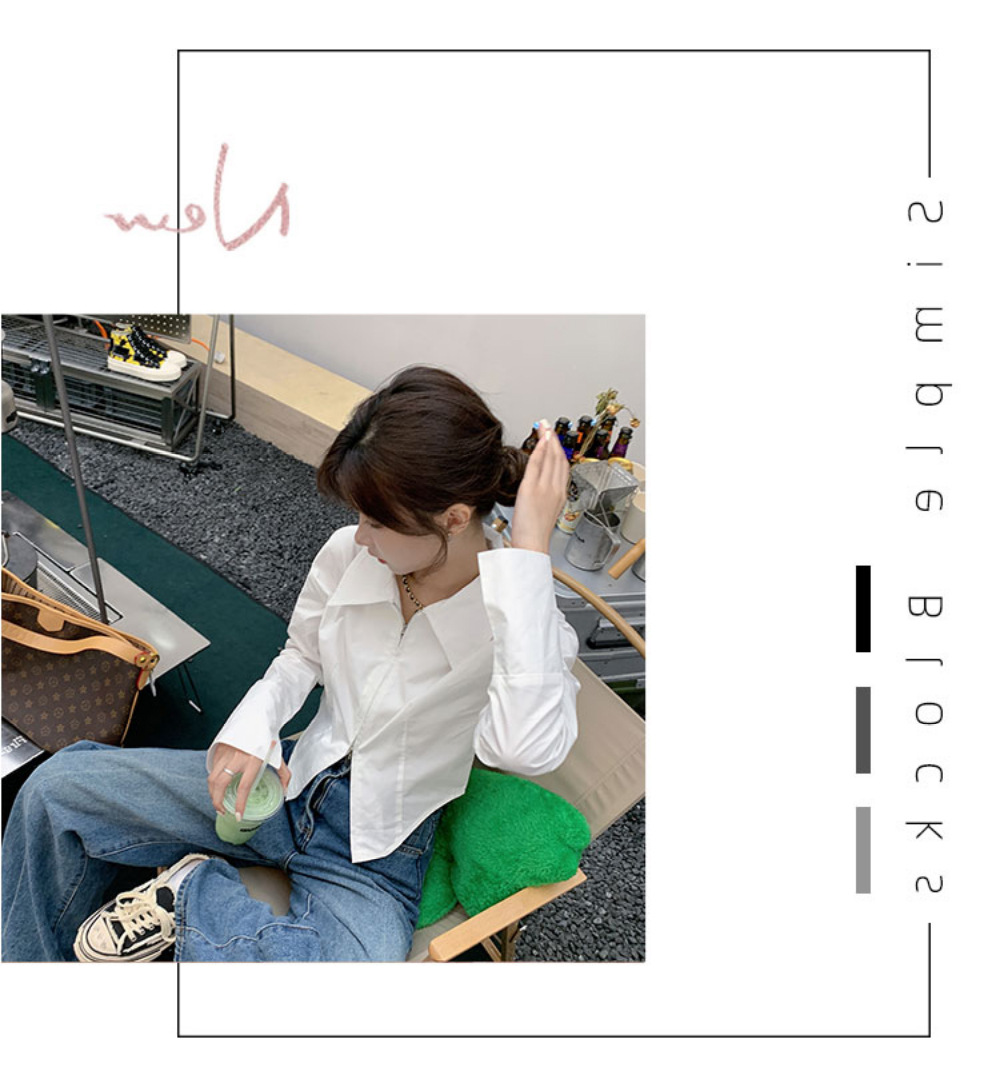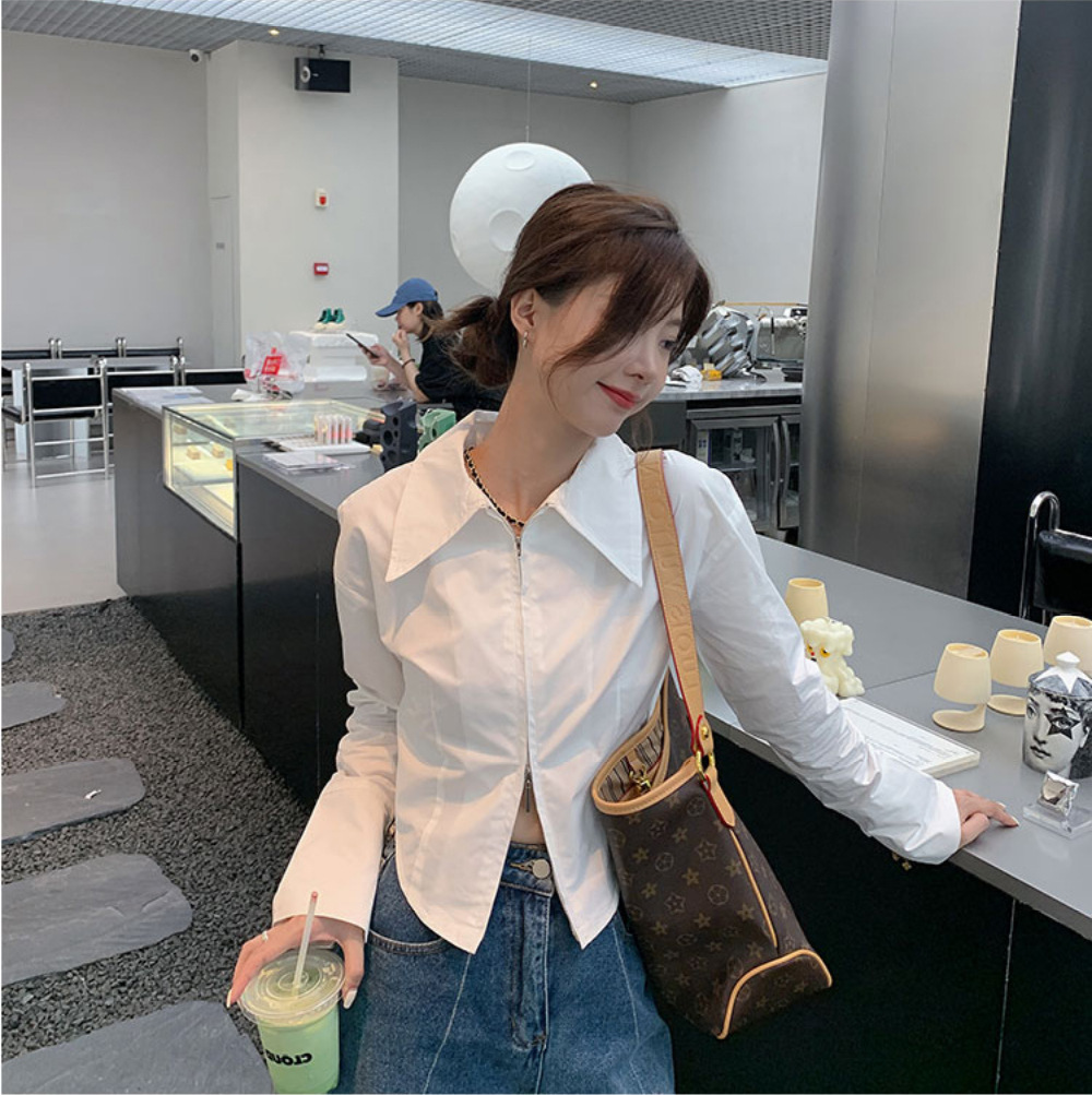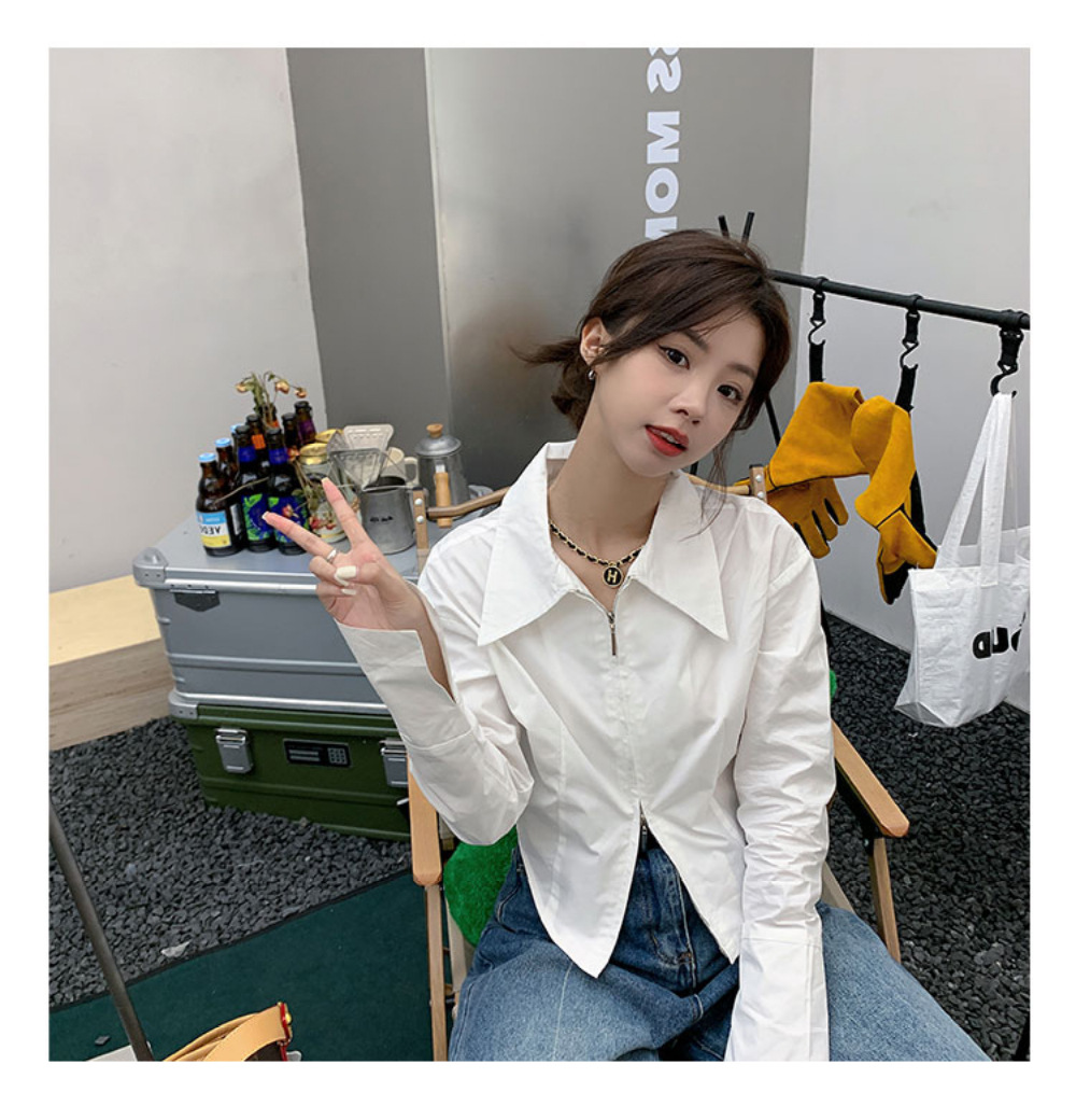 프랑스 스타일 우아한 지퍼 화이트 셔츠 여성용 봄 디자인 센스 짧은 시크 탑 베이스 긴 소매 셔츠스토어 가기