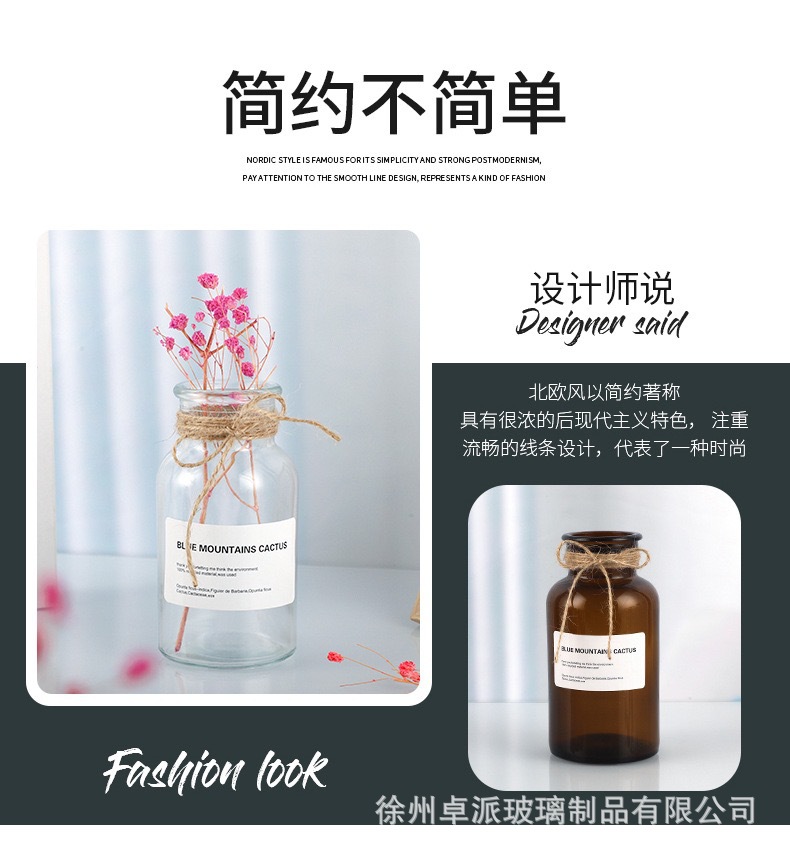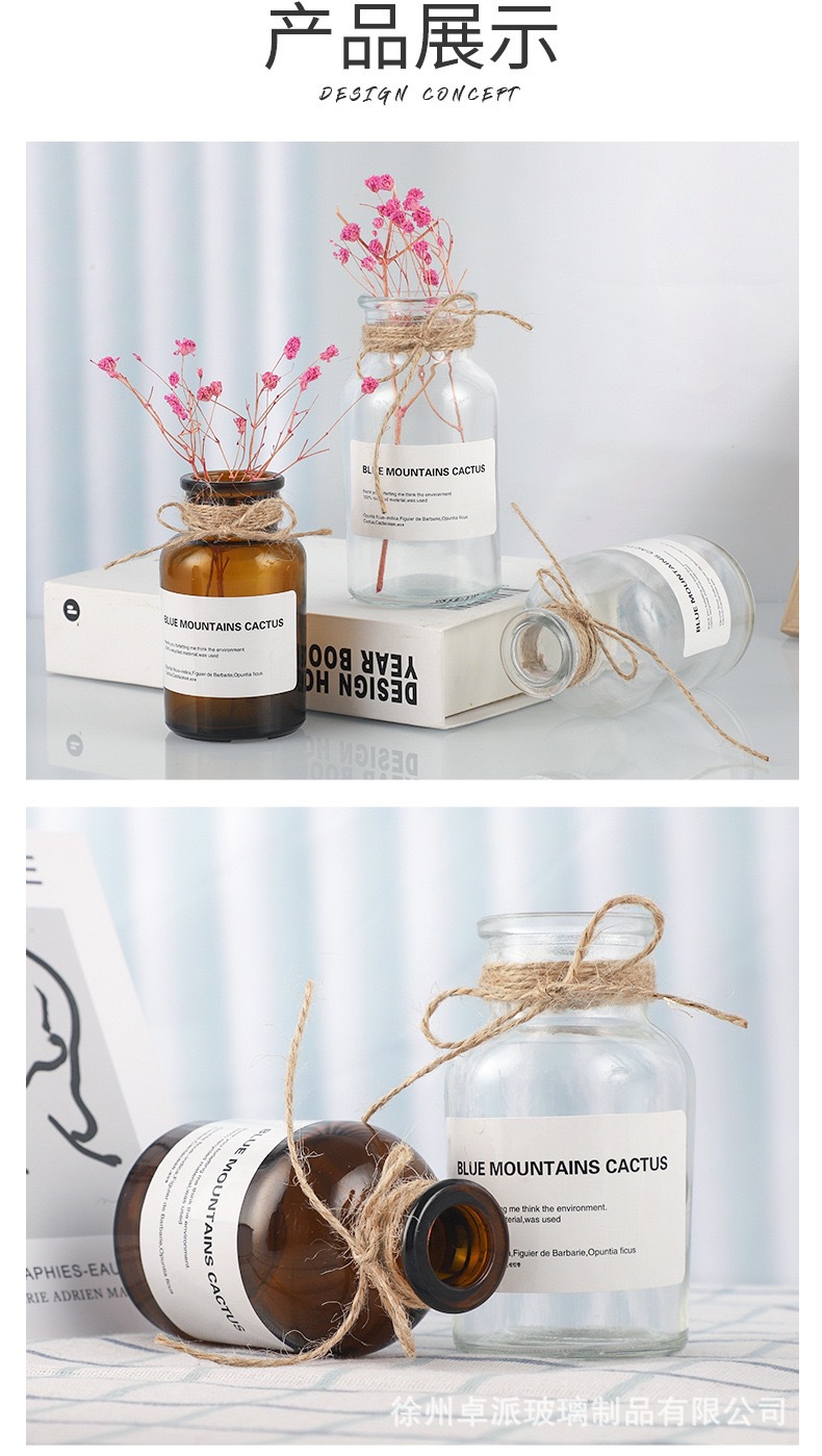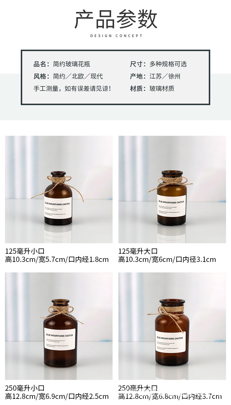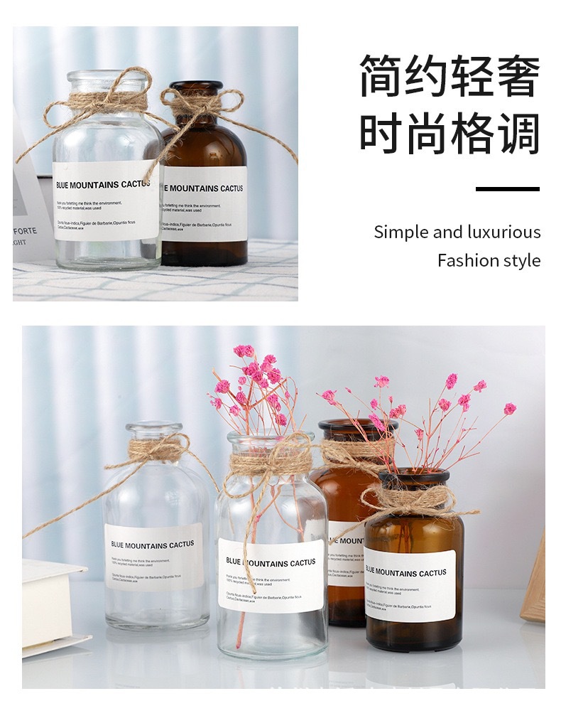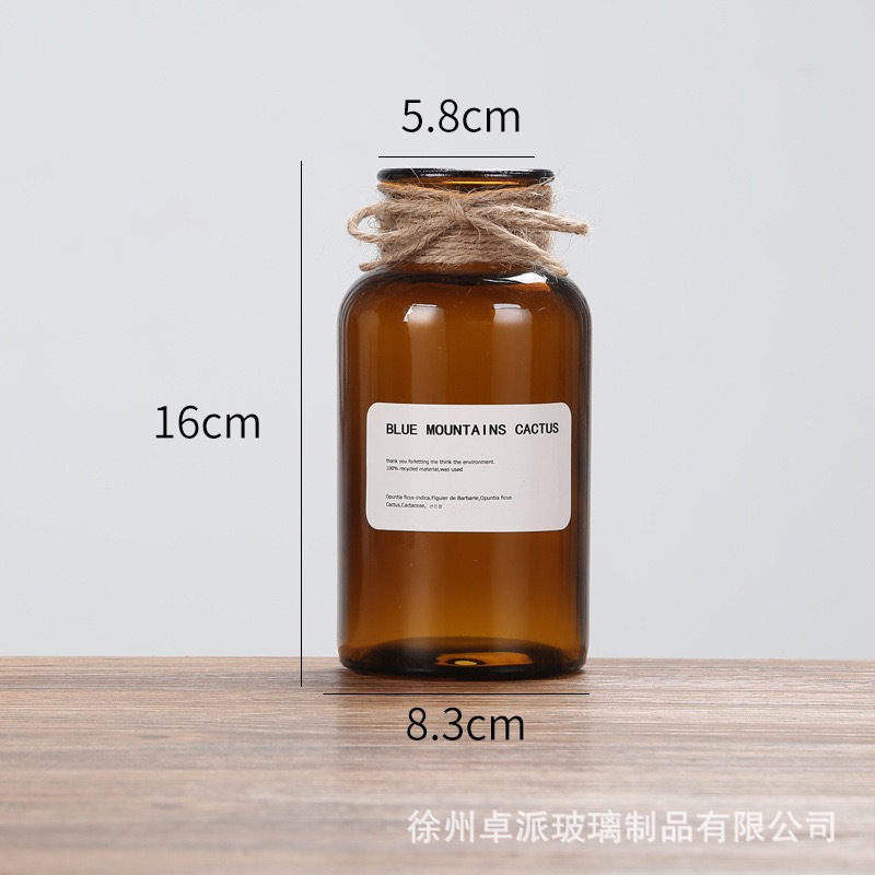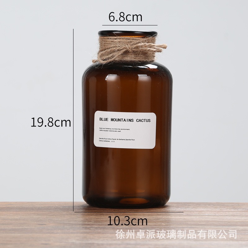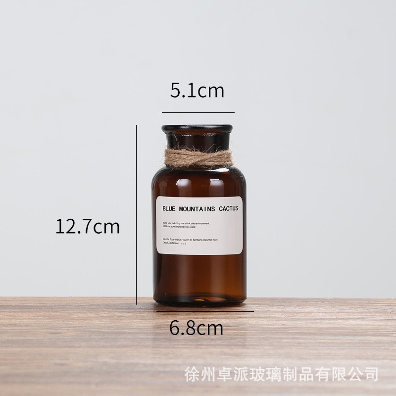 재고 인 유리 병 꽃병 꽃병 시약 병 차 색깔 다크 브라운 식료품 북유럽 빈티지 산업 스타일 꽃병스토어 가기