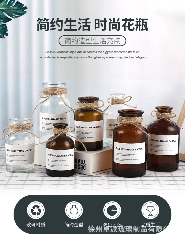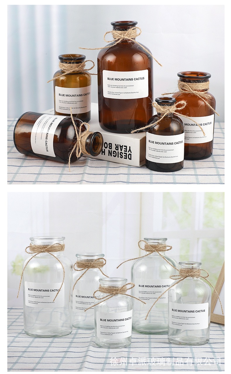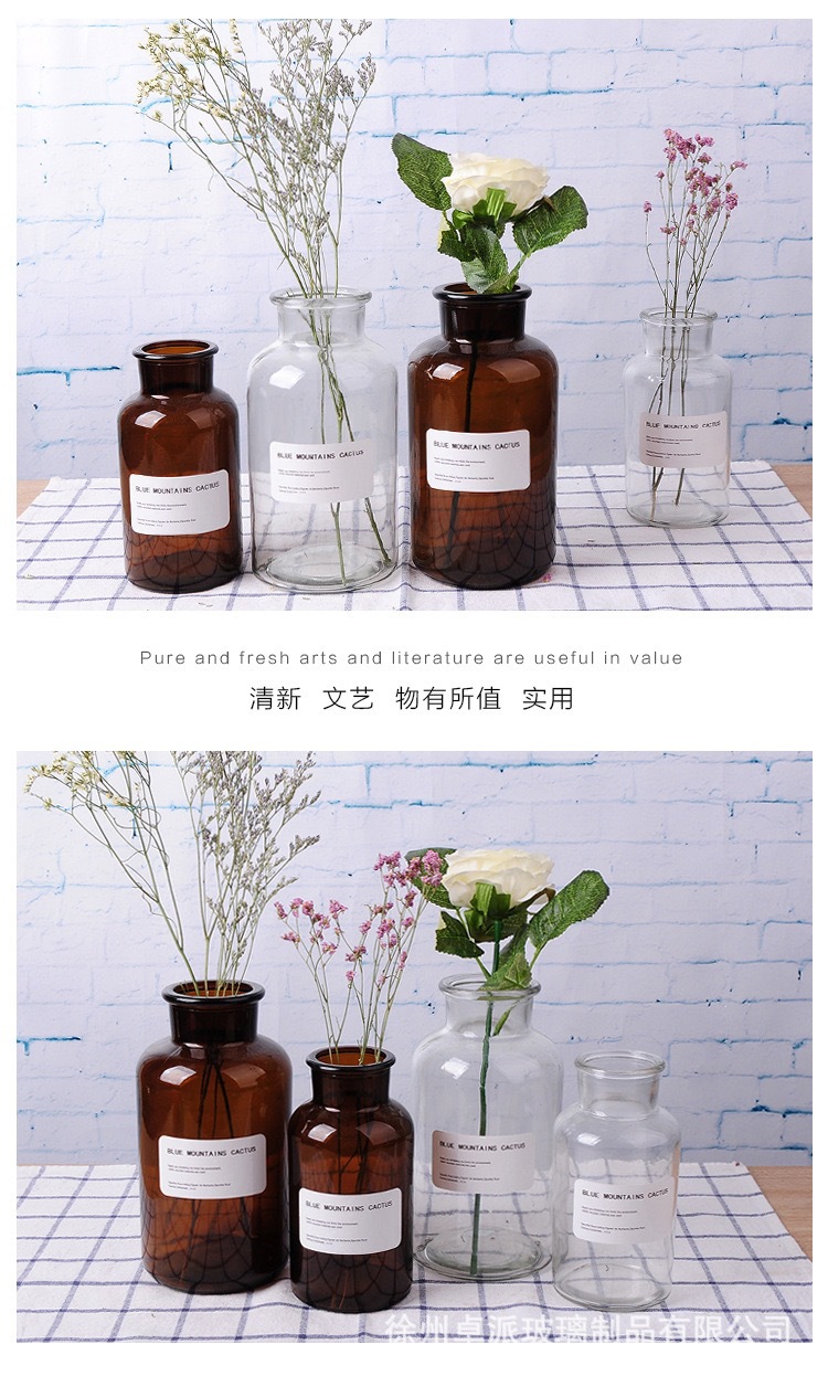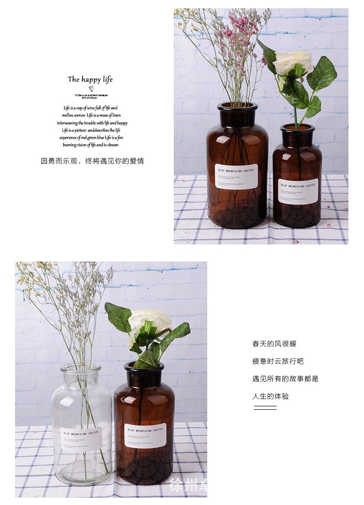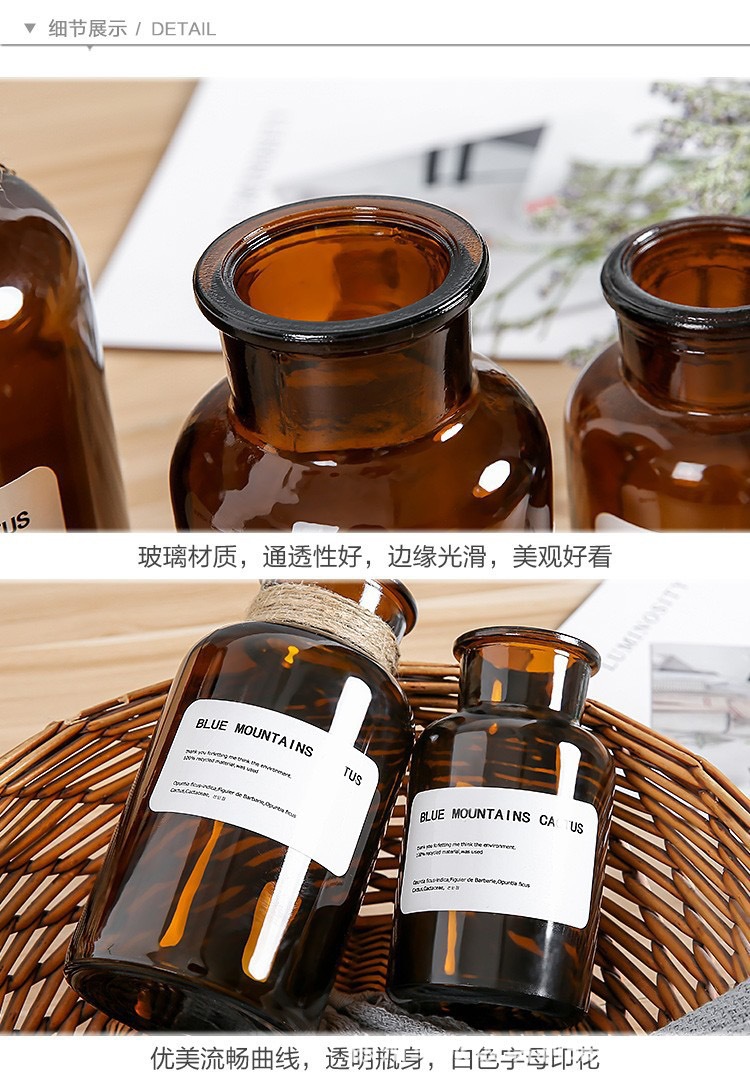 재고 인 유리 병 꽃병 꽃병 시약 병 차 색깔 다크 브라운 식료품 북유럽 빈티지 산업 스타일 꽃병