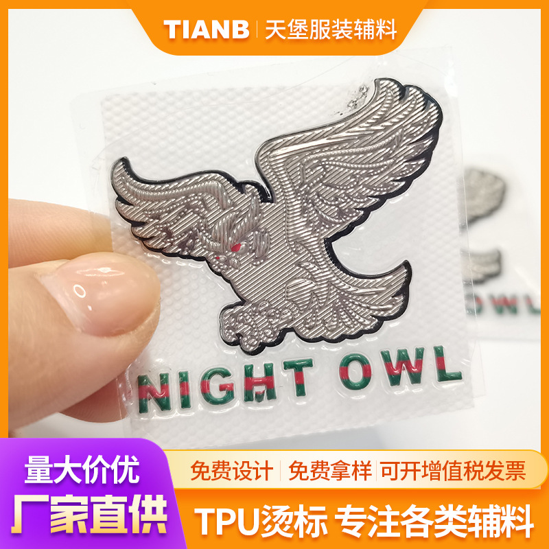 TPU 고주파 상표 의류 액세서리 생산 3D 입체 인쇄 능직 광택 로고 열전달 프레스 라벨스토어 가기