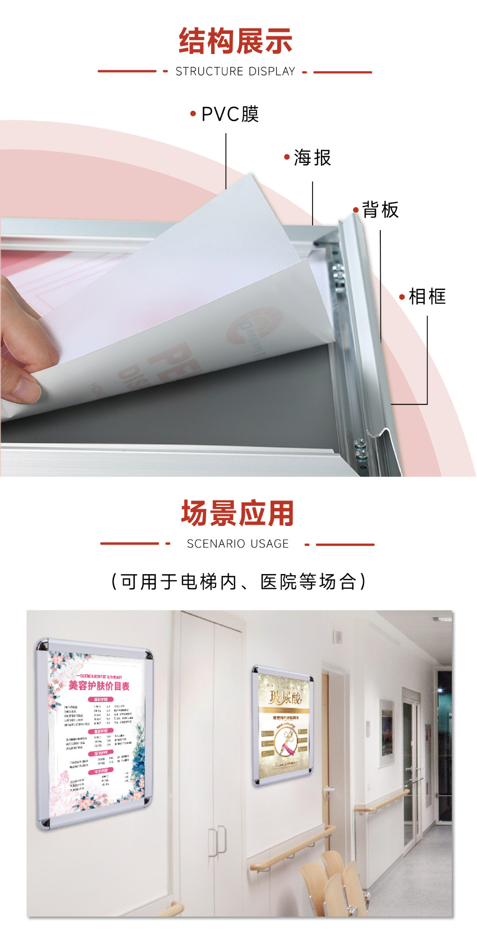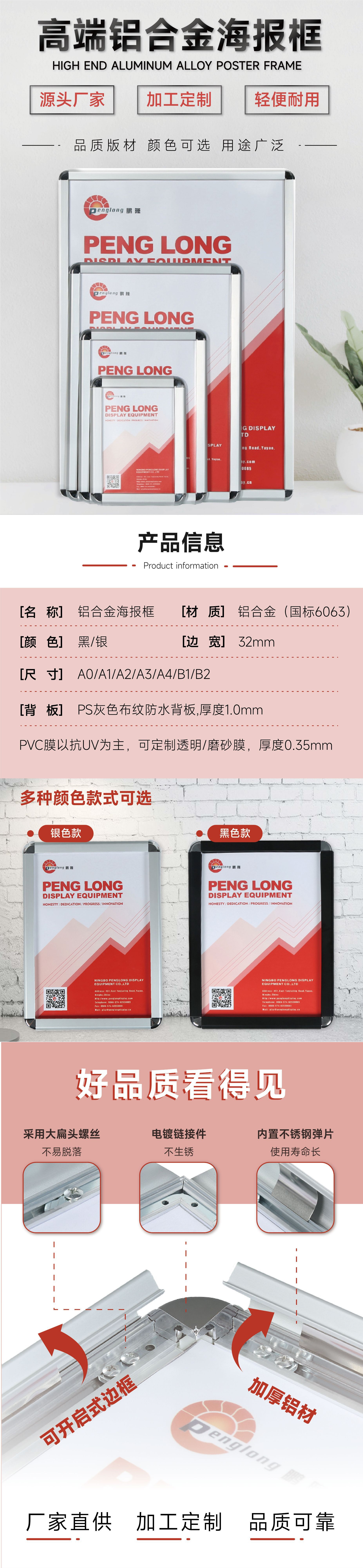 알루미늄 합금 액자 원형 포스터 액자 액자 판촉물 엘리베이터 광고 액자 증명서 액자 32mm 제작