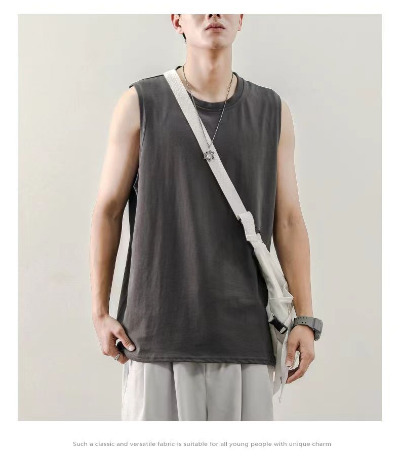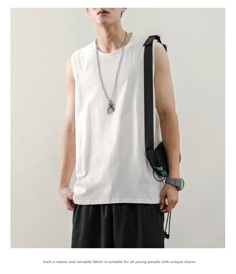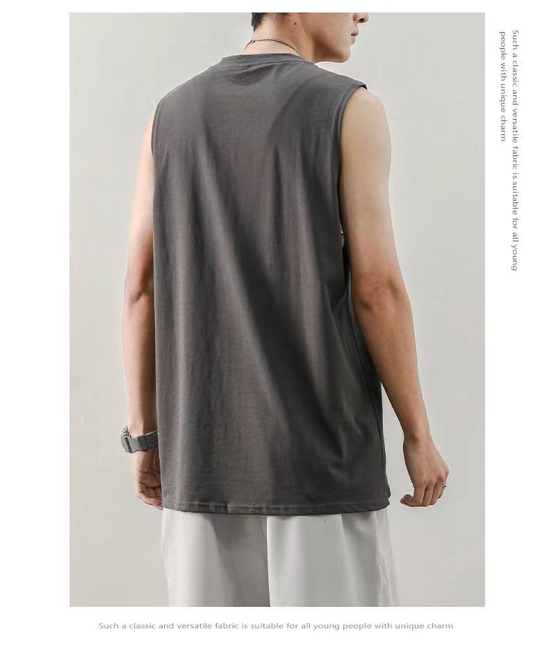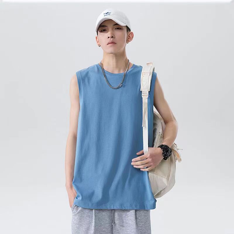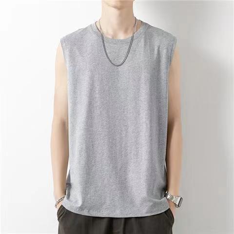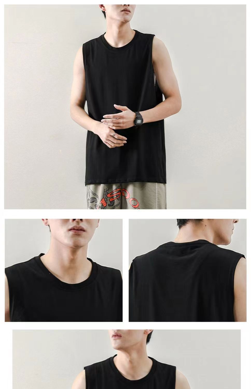 공장 직접 조끼 남자 여름 야외 농구 피트니스 장애물 스포츠 와이드 숄더 솔리드 컬러 민소매 라운드 넥 셔츠스토어 가기