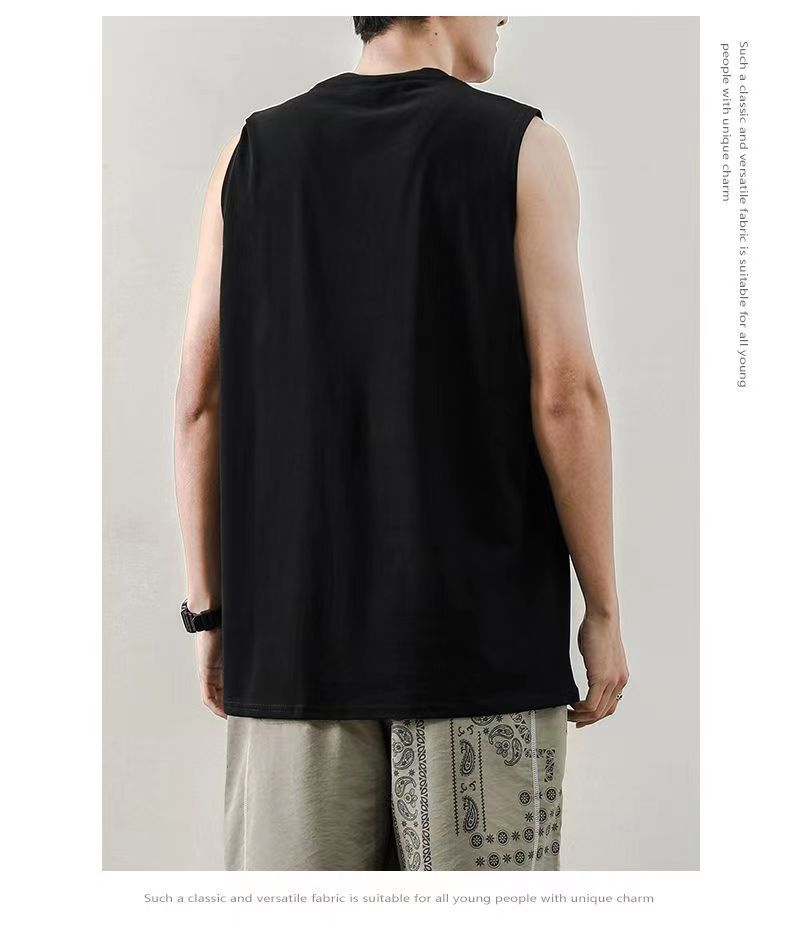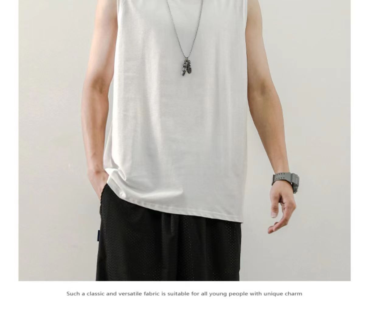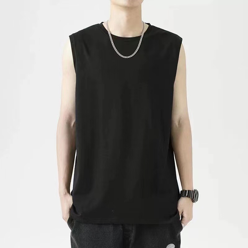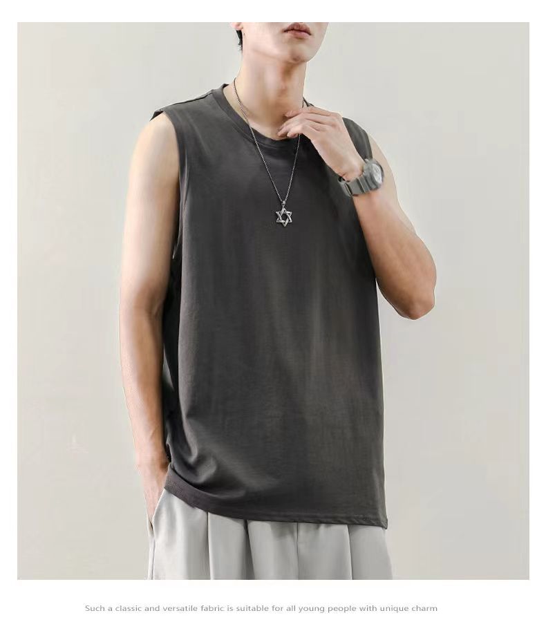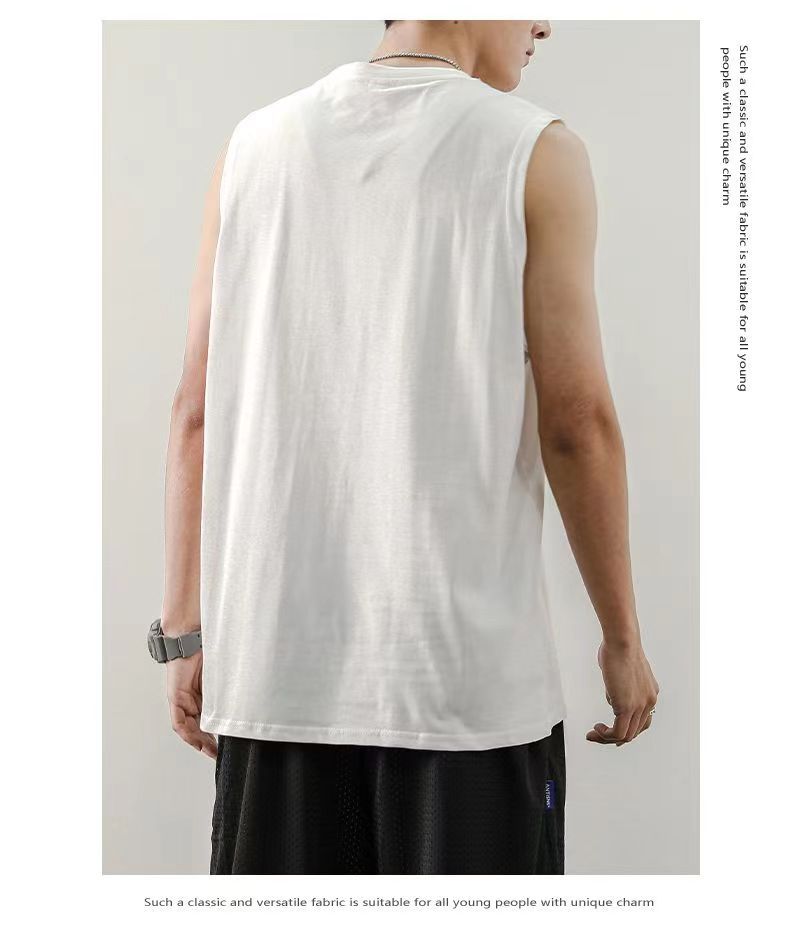 공장 직접 조끼 남자 여름 야외 농구 피트니스 장애물 스포츠 와이드 숄더 솔리드 컬러 민소매 라운드 넥 셔츠스토어 가기