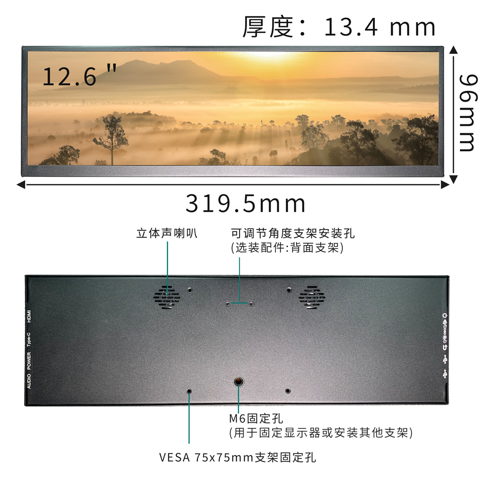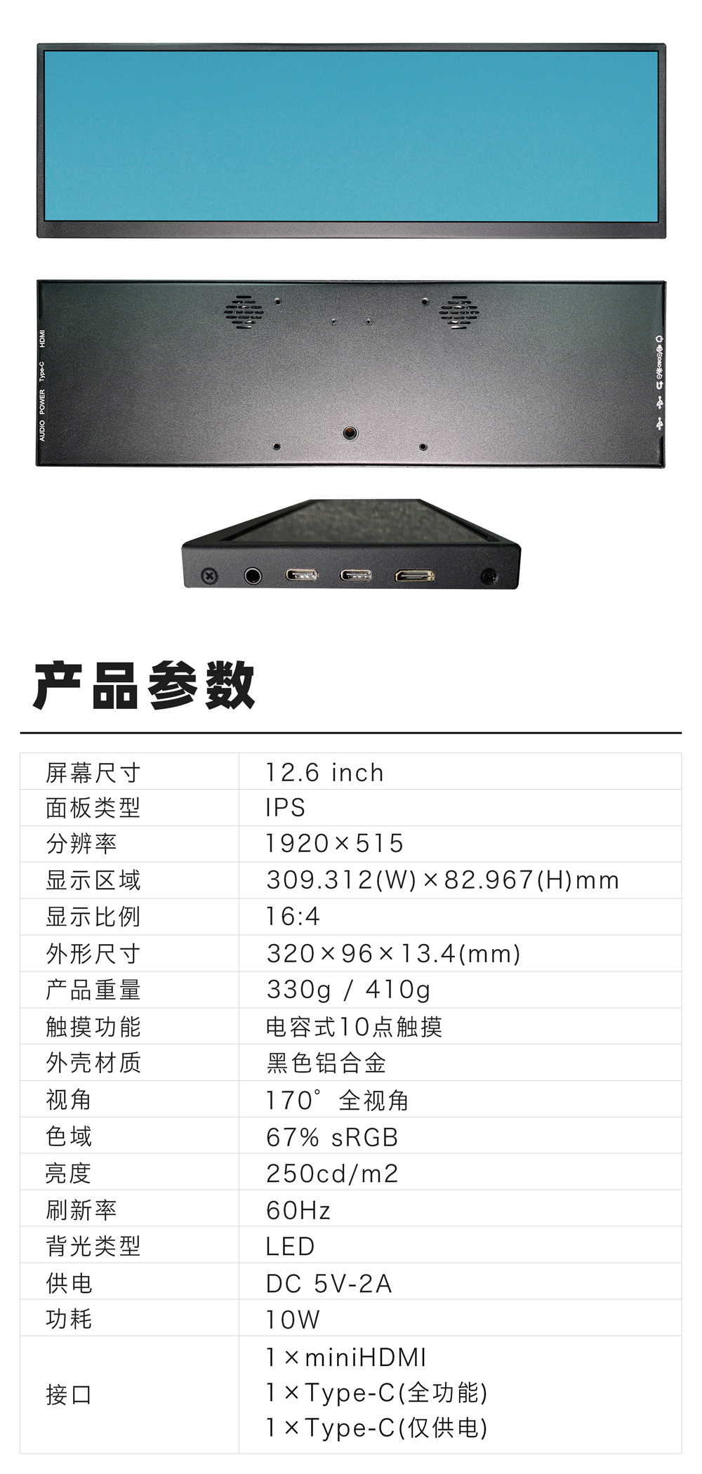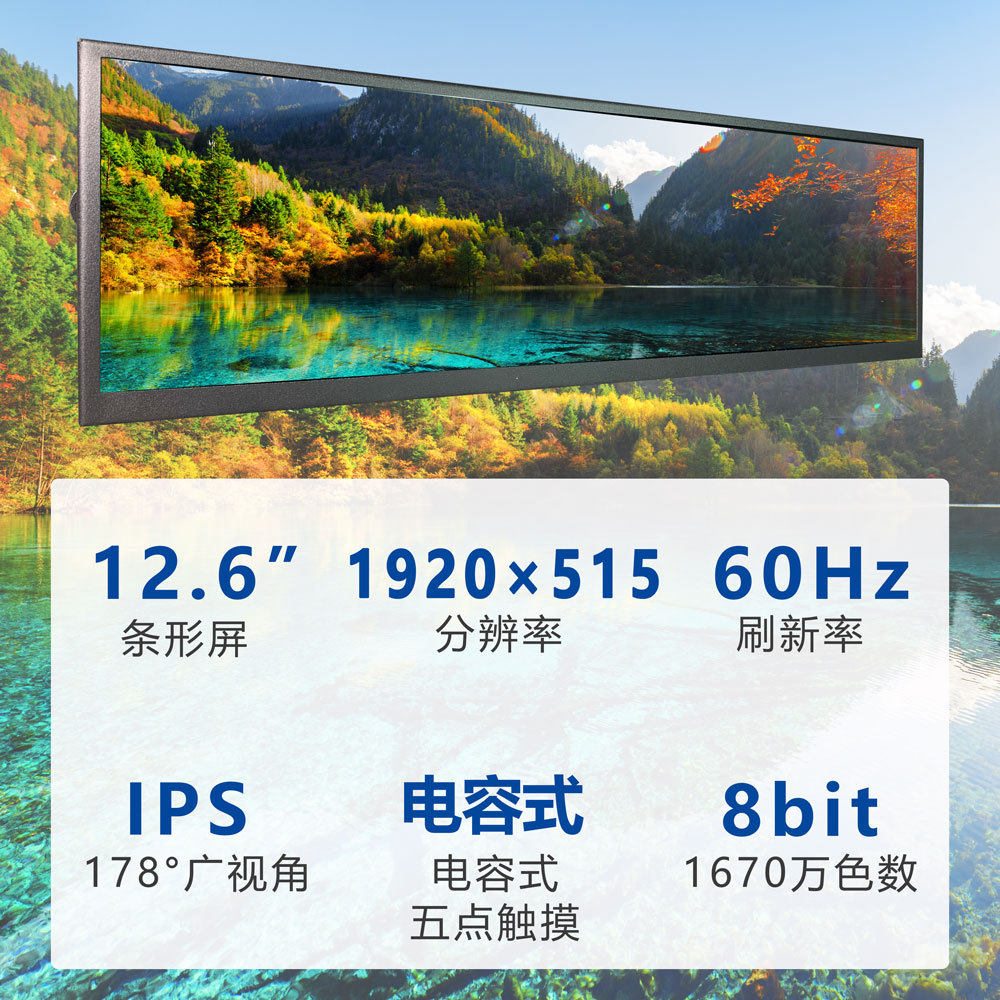 12.6inch 롱 스트립 디스플레이 TypeCIPS 휴대용 터치 모니터 컴퓨터 확장 케이스 보조 화면 터치