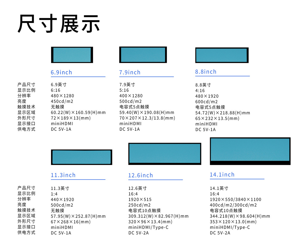 12.6inch 롱 스트립 디스플레이 TypeCIPS 휴대용 터치 모니터 컴퓨터 확장 케이스 보조 화면 터치스토어 가기