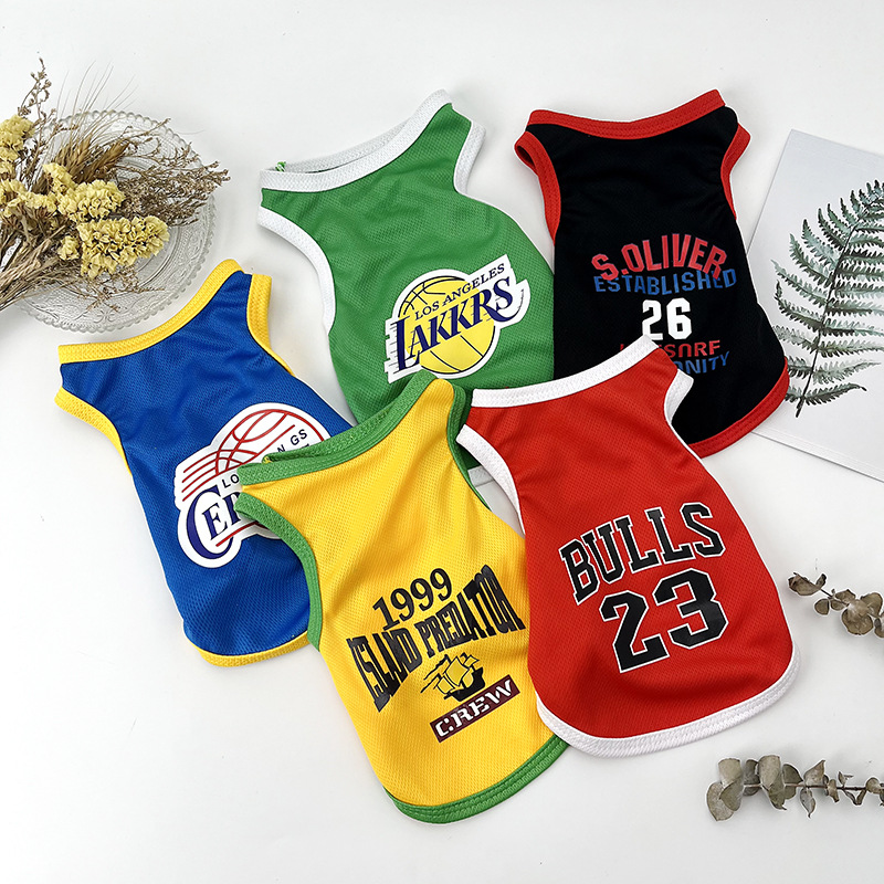 봄과 여름 대형, 중형 및 소형견 골든 리트리버 사츠마 개 고양이 애완 동물 메쉬 조끼 월드컵 농구 의류 용품스토어 가기