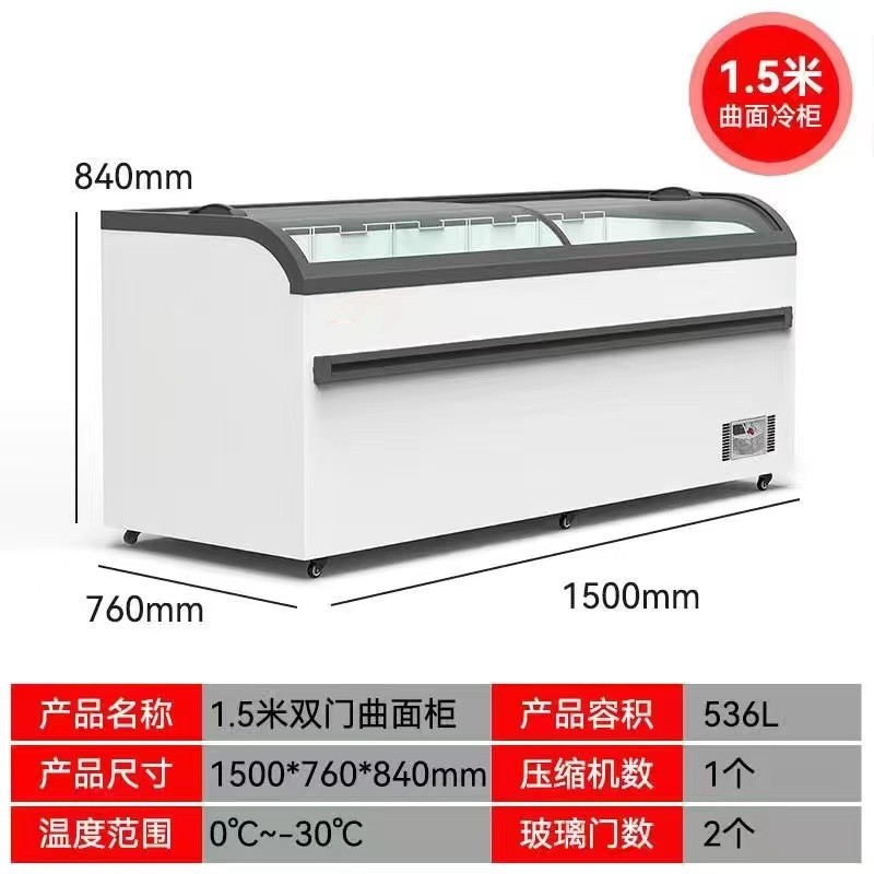 냉장 디스플레이 캐비닛 신선한 보관 캐비닛 상업용 냉동고 이중 도어 조합 슈퍼마켓 섬 캐비닛 투명 유리 슬라이딩 도어 아이스크림 캐비닛스토어 가기