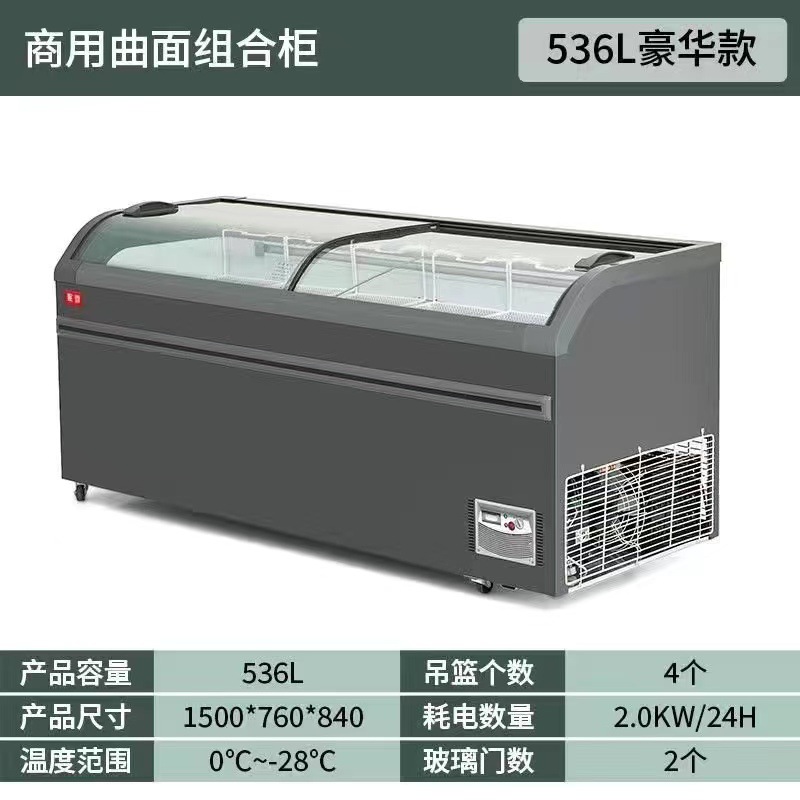 냉장 디스플레이 캐비닛 신선한 보관 캐비닛 상업용 냉동고 이중 도어 조합 슈퍼마켓 섬 캐비닛 투명 유리 슬라이딩 도어 아이스크림 캐비닛