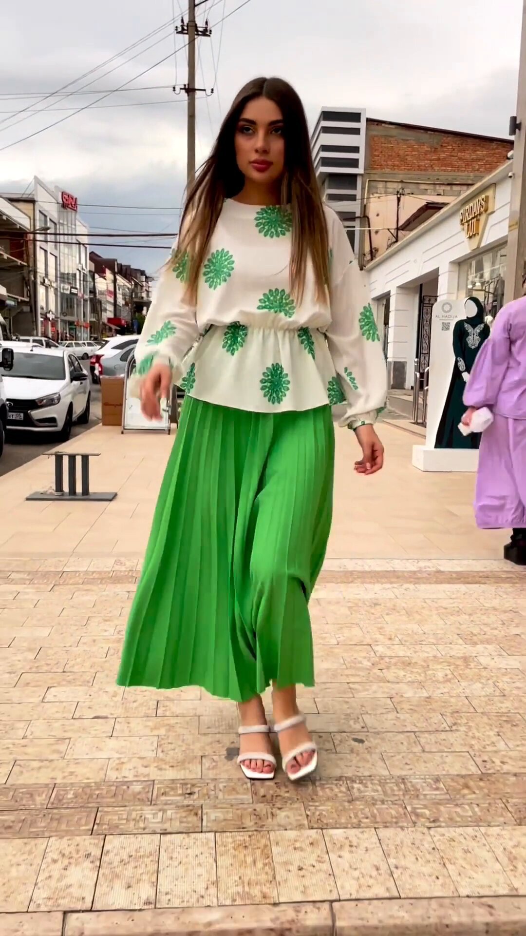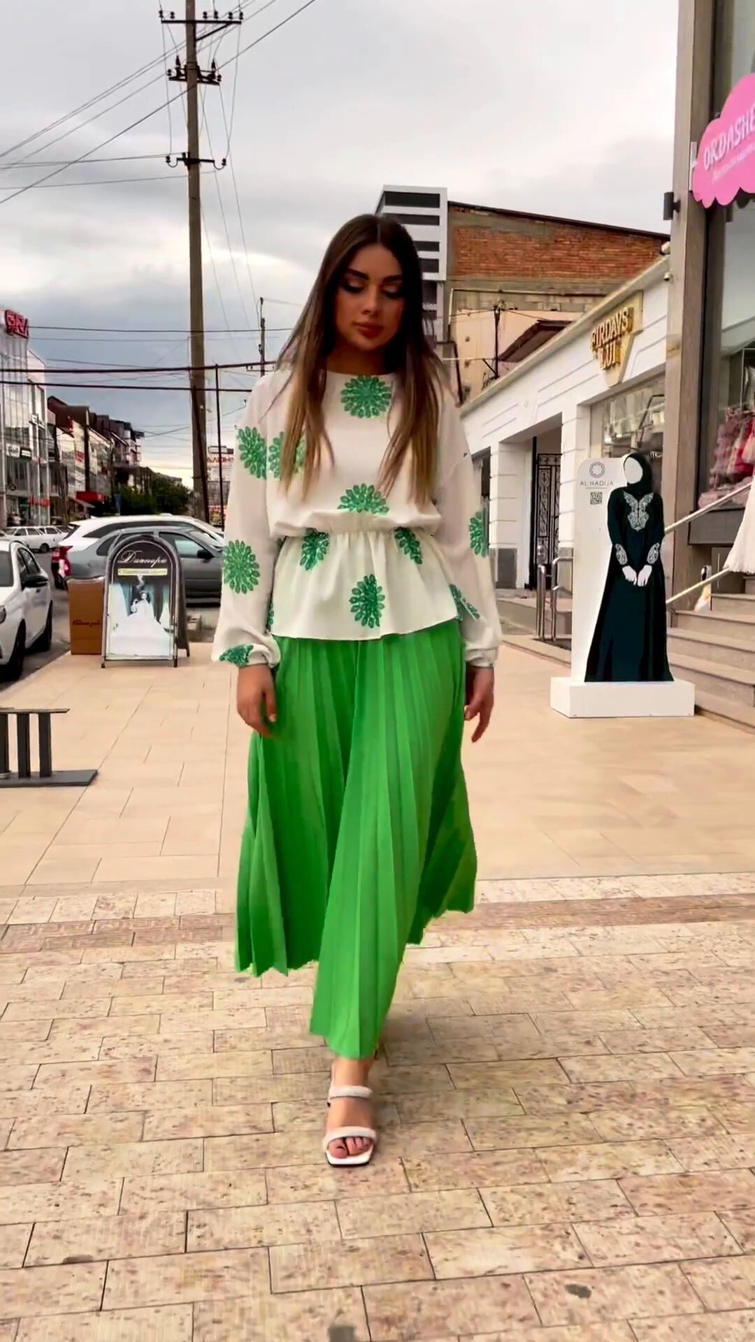 2024 새로운 스타일의 기질 유럽과 미국의 국경 지대 미야케 여성의 긴 소매 최고 허리 통근 치마 세트스토어 가기