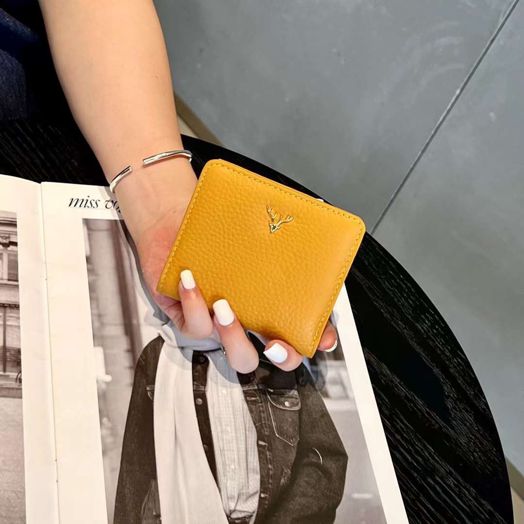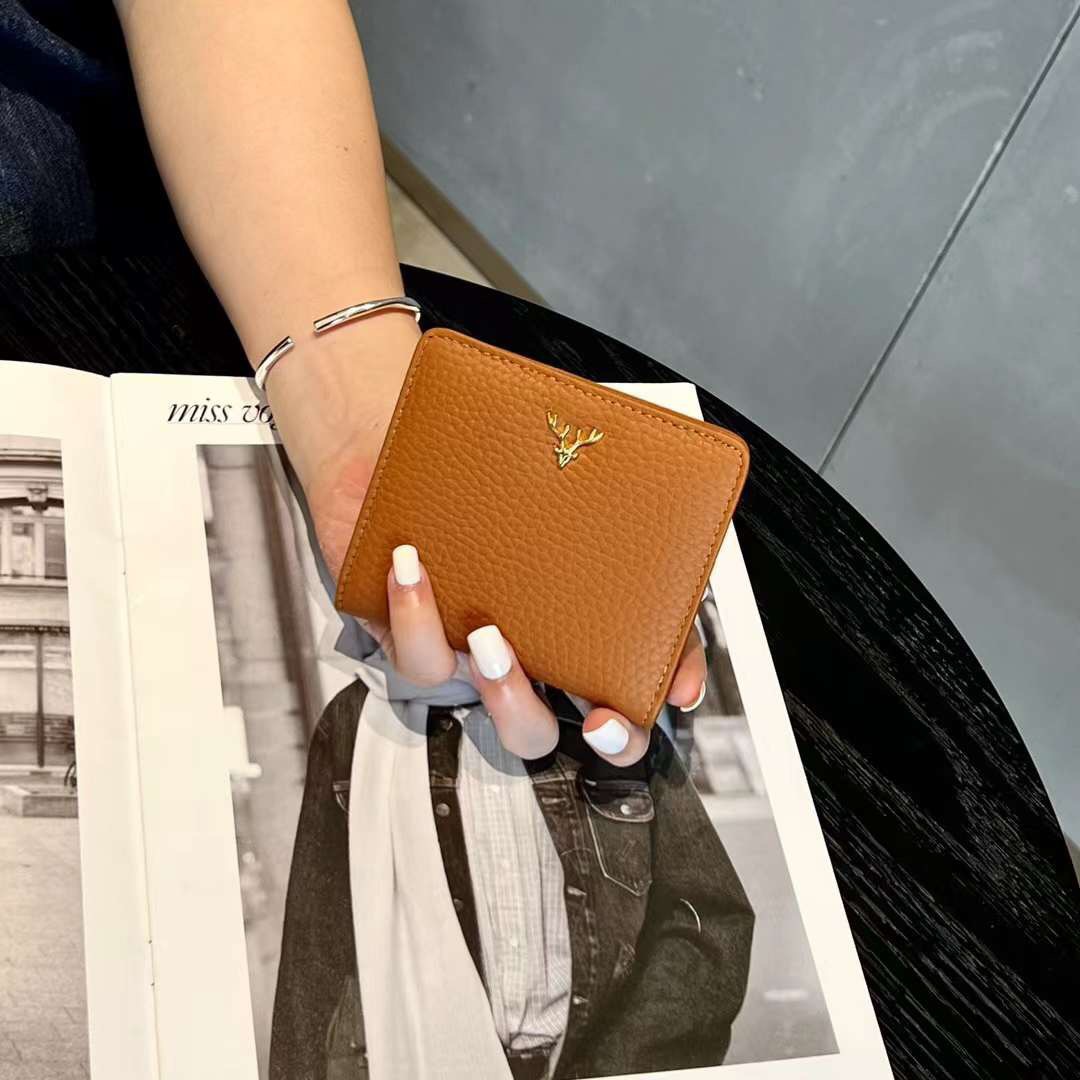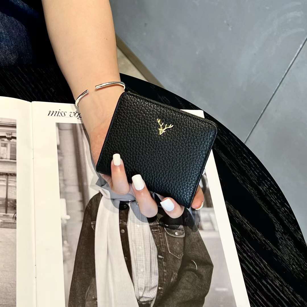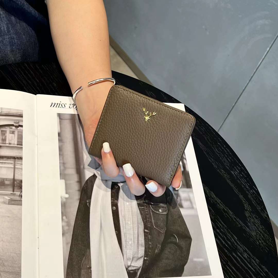 천연 가죽 사슴뿔 지갑 여성용 인스 스타일 동전 지갑 전체 소가죽 반접이 지갑 리치 패턴 패션 다용도스토어 가기