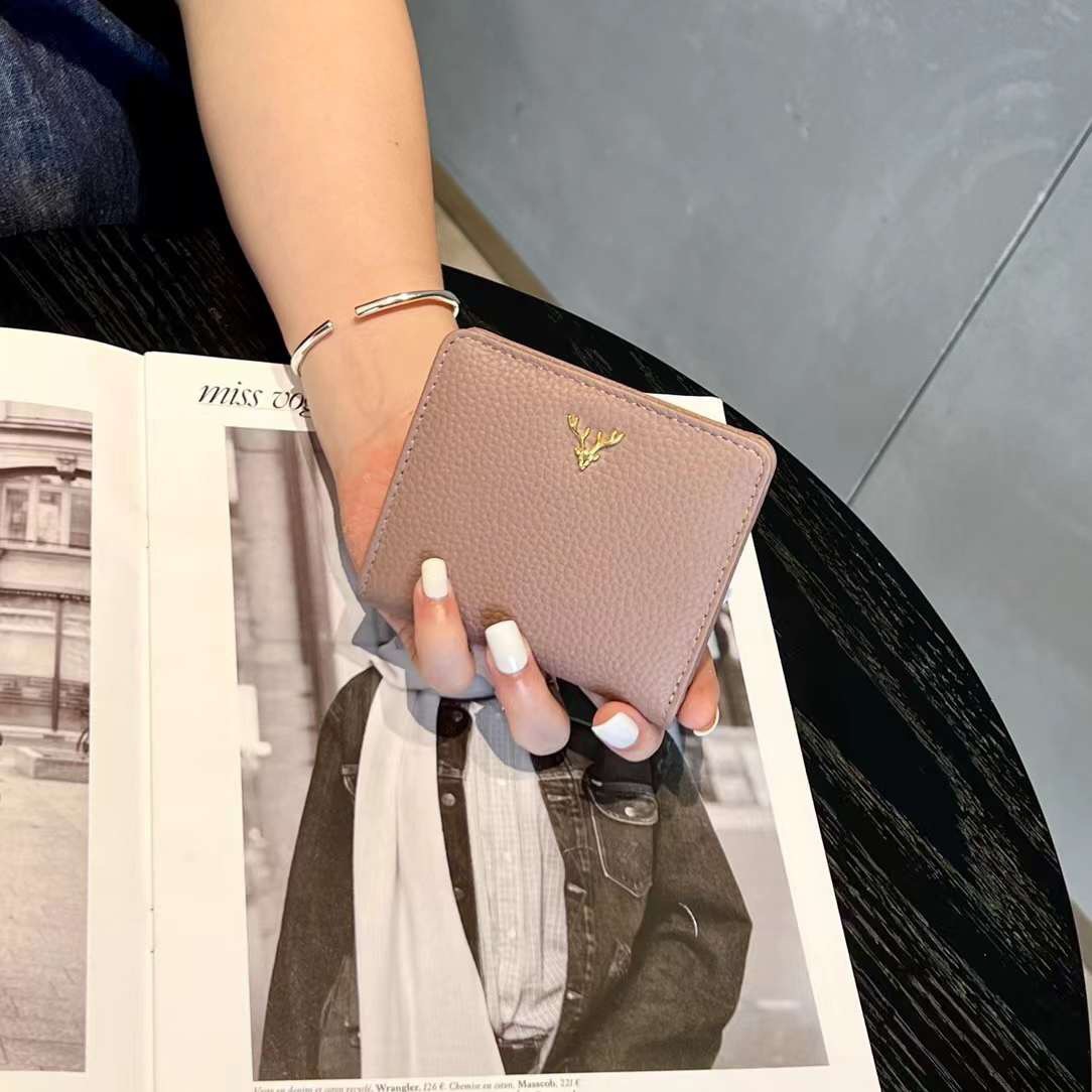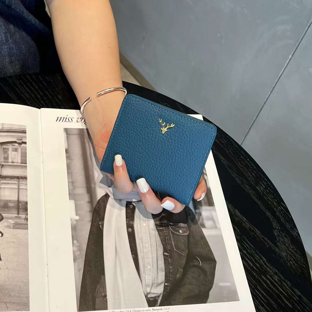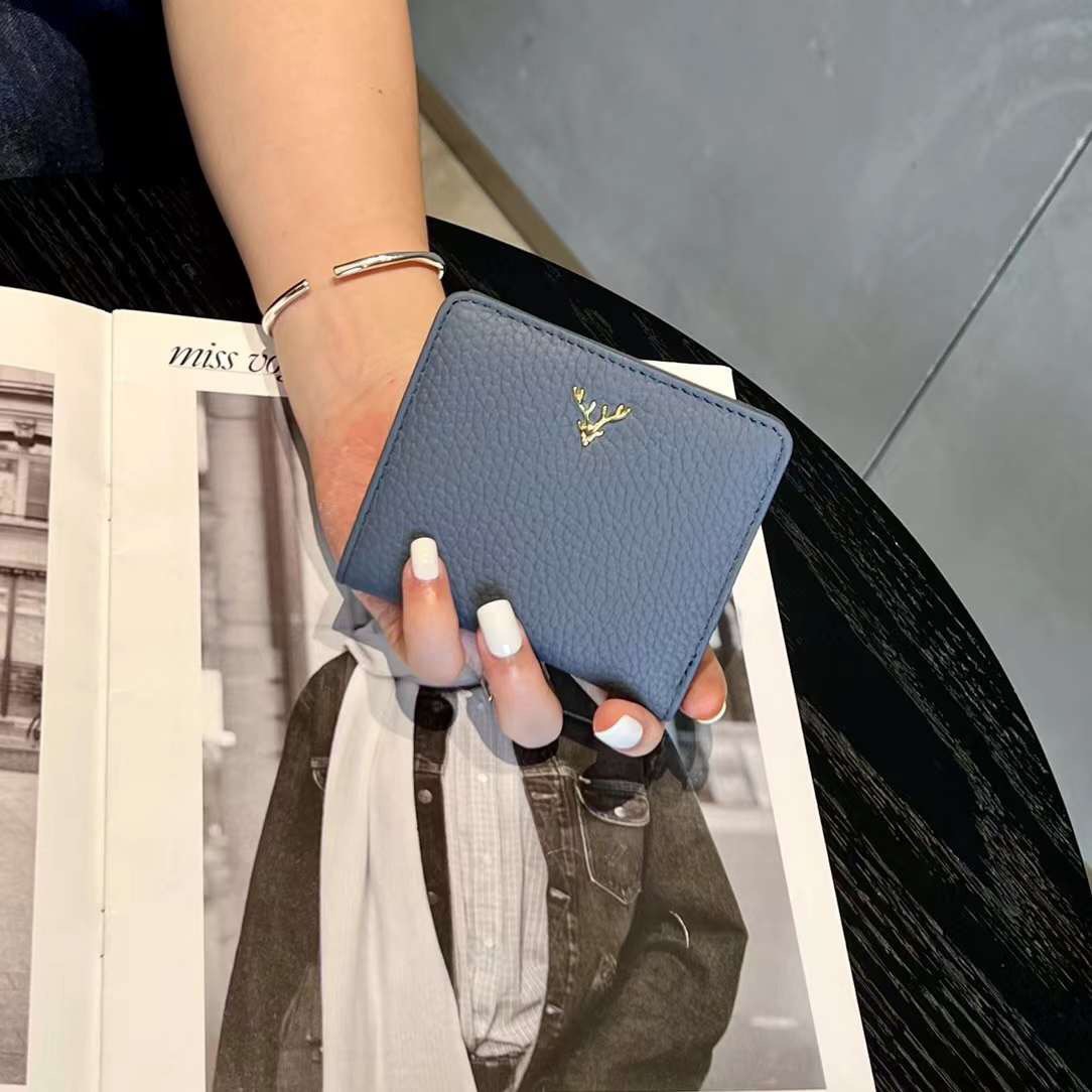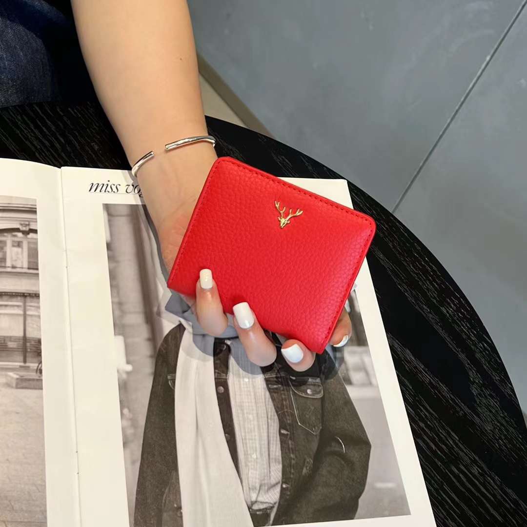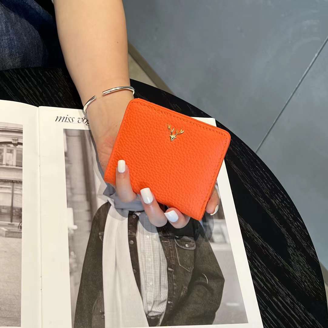 천연 가죽 사슴뿔 지갑 여성용 인스 스타일 동전 지갑 전체 소가죽 반접이 지갑 리치 패턴 패션 다용도스토어 가기