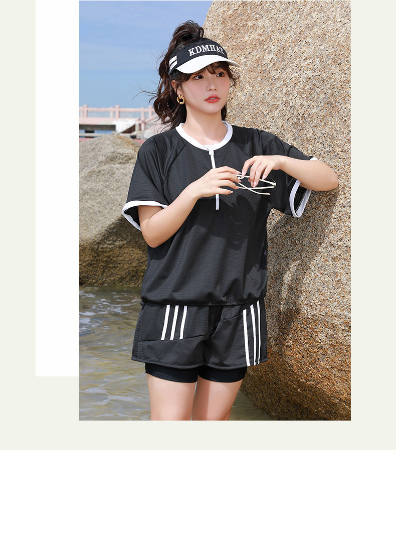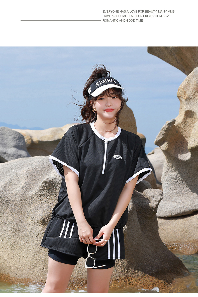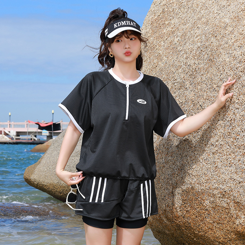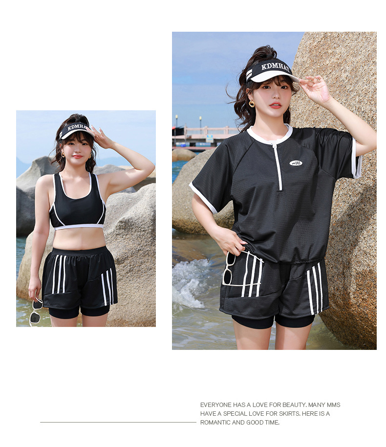 플러스 사이즈 수영복 여성 보수적 인 통통녀 큰 가슴 덮음 고기 200kg 온천 학생 분할 3 피스 스포츠 수영복,스토어 가기
