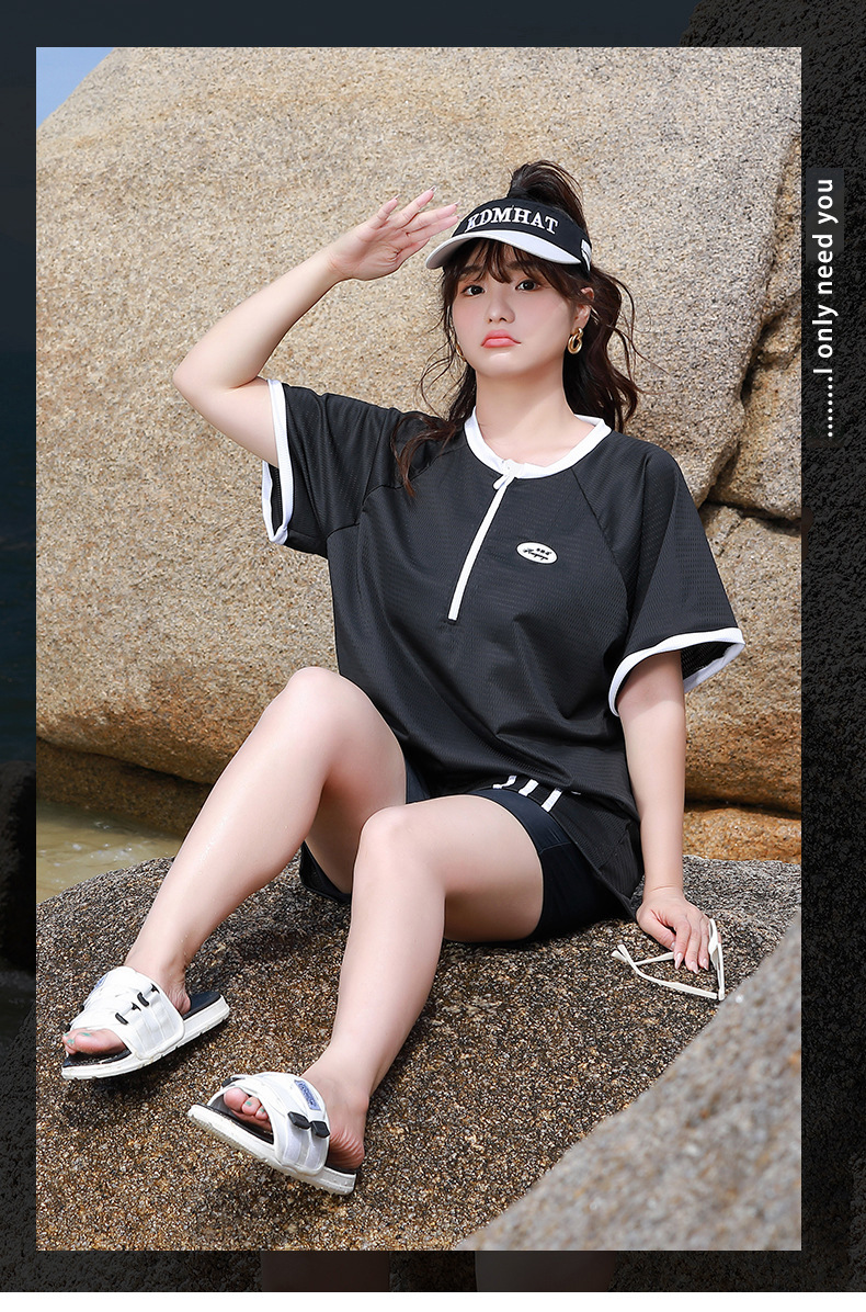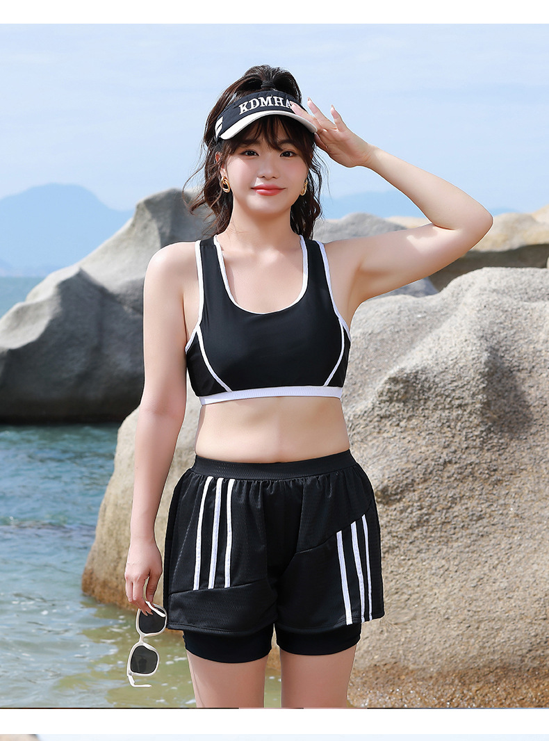 플러스 사이즈 수영복 여성 보수적 인 통통녀 큰 가슴 덮음 고기 200kg 온천 학생 분할 3 피스 스포츠 수영복,