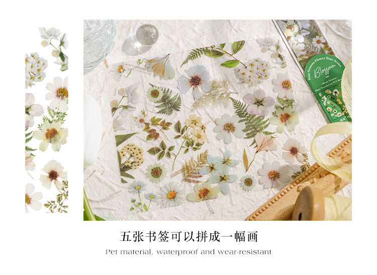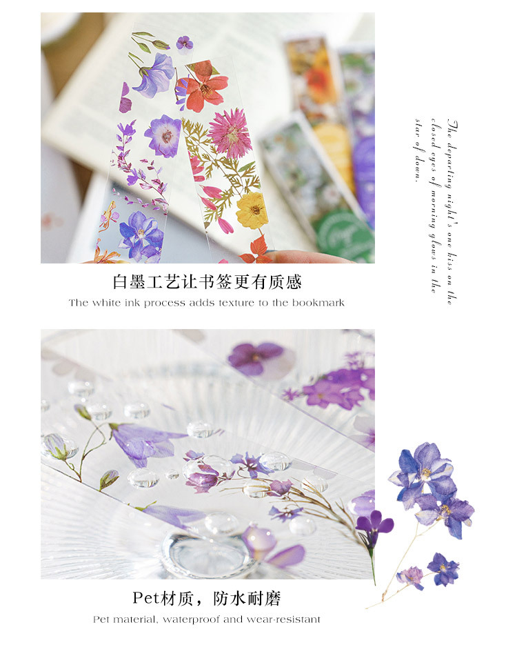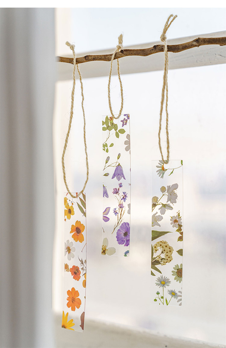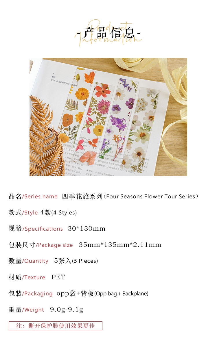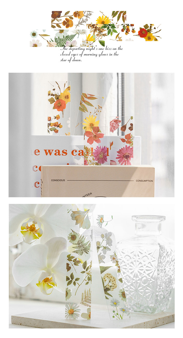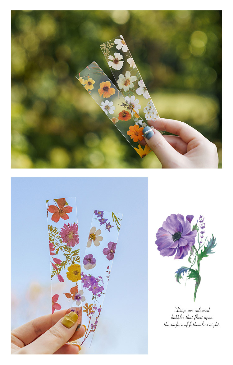 모 식물 반투명 PET 책갈피 사계절 꽃 여행 시리즈 손 계정 소재 콜라주 수제 책갈피 4