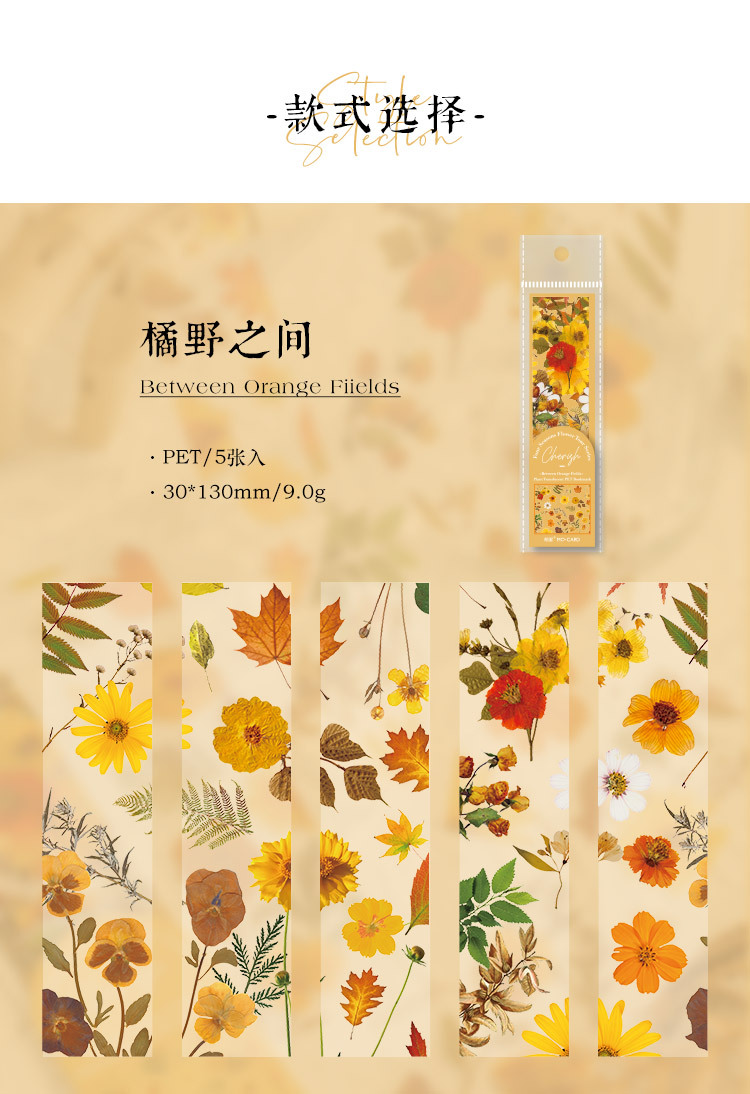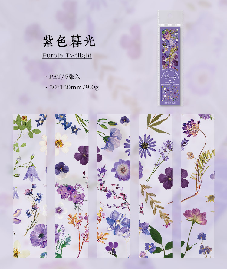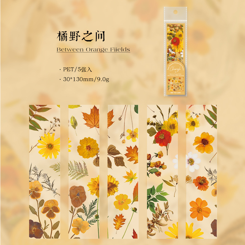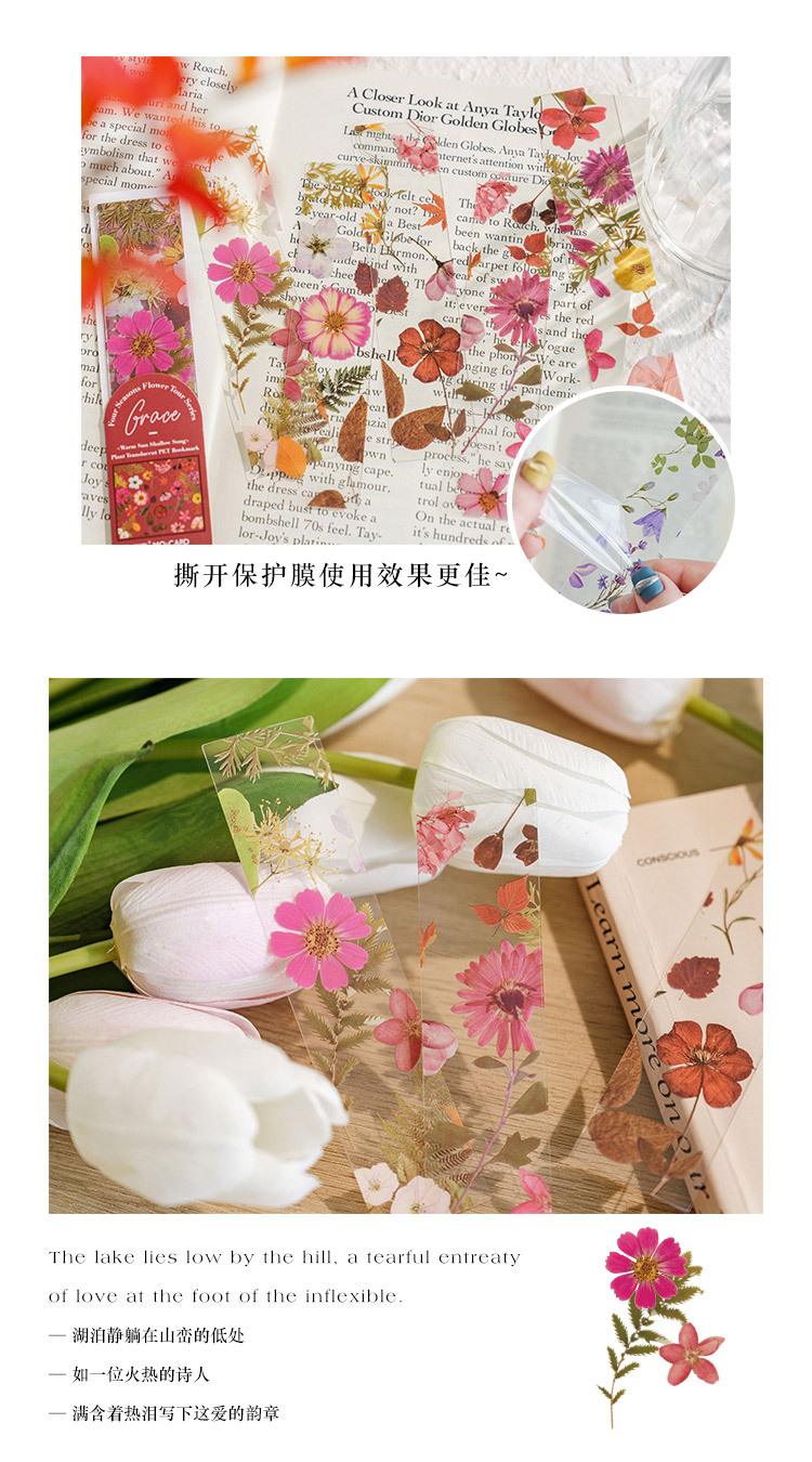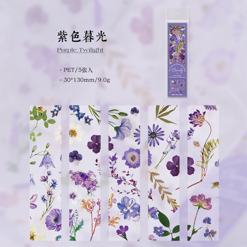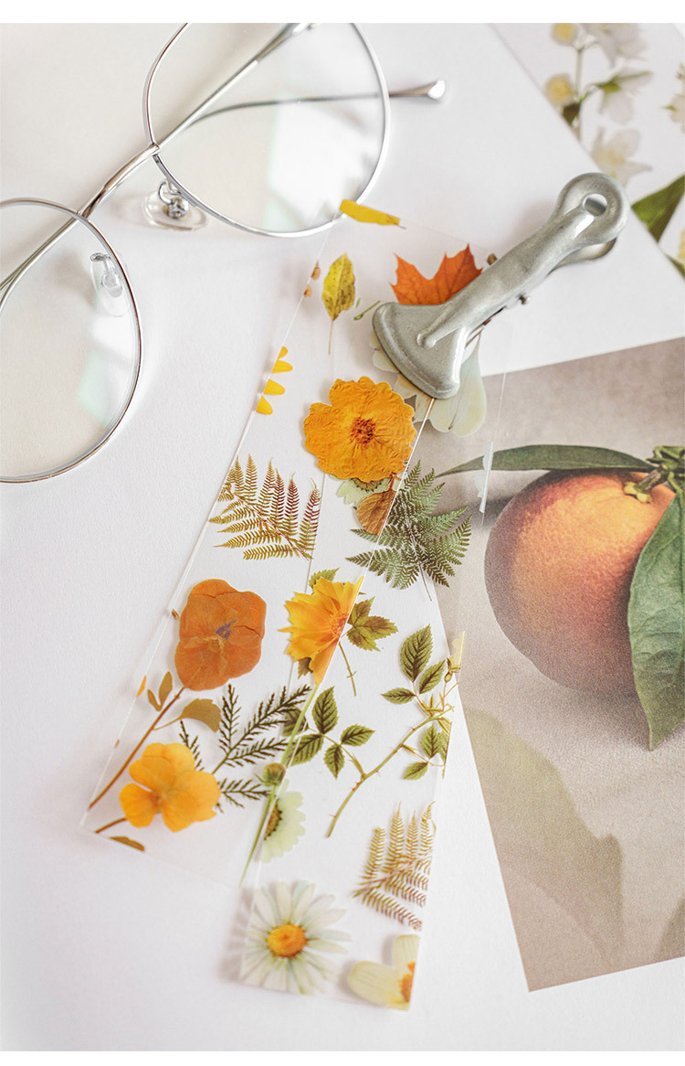 모 식물 반투명 PET 책갈피 사계절 꽃 여행 시리즈 손 계정 소재 콜라주 수제 책갈피 4