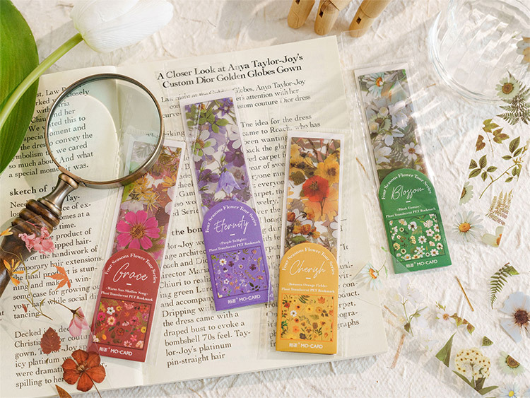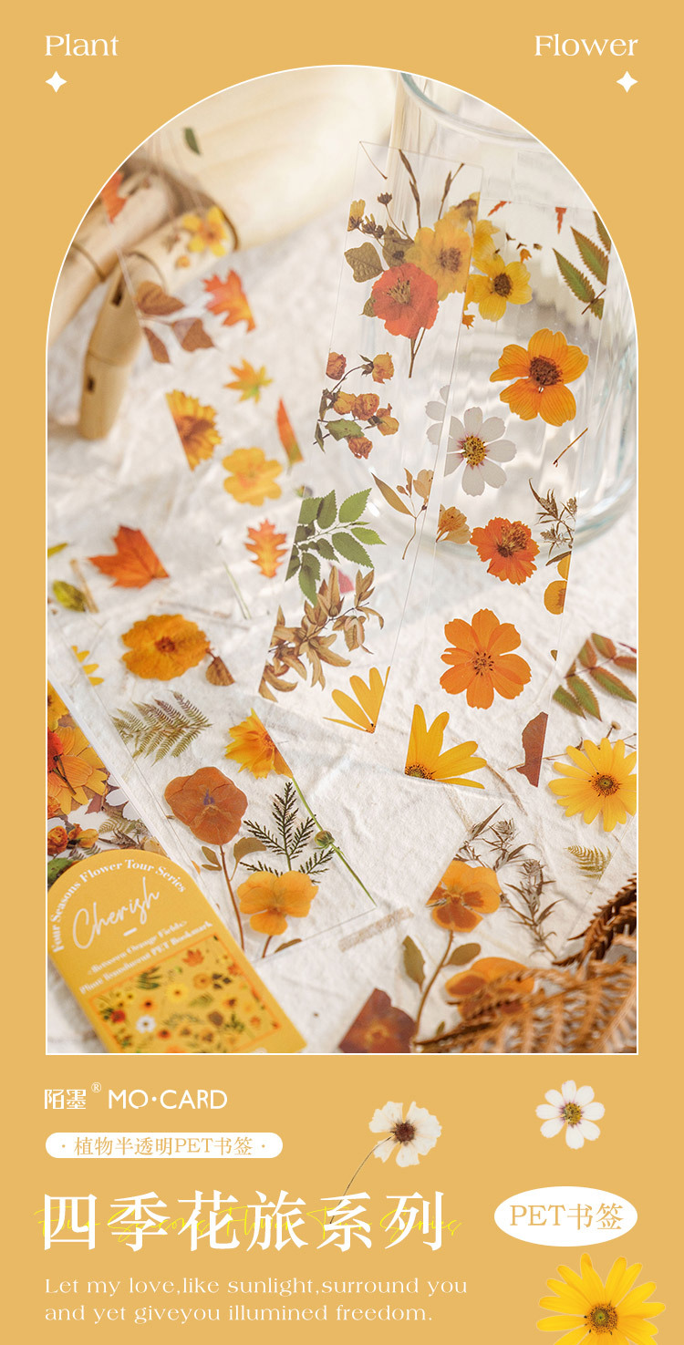 모 식물 반투명 PET 책갈피 사계절 꽃 여행 시리즈 손 계정 소재 콜라주 수제 책갈피 4스토어 가기