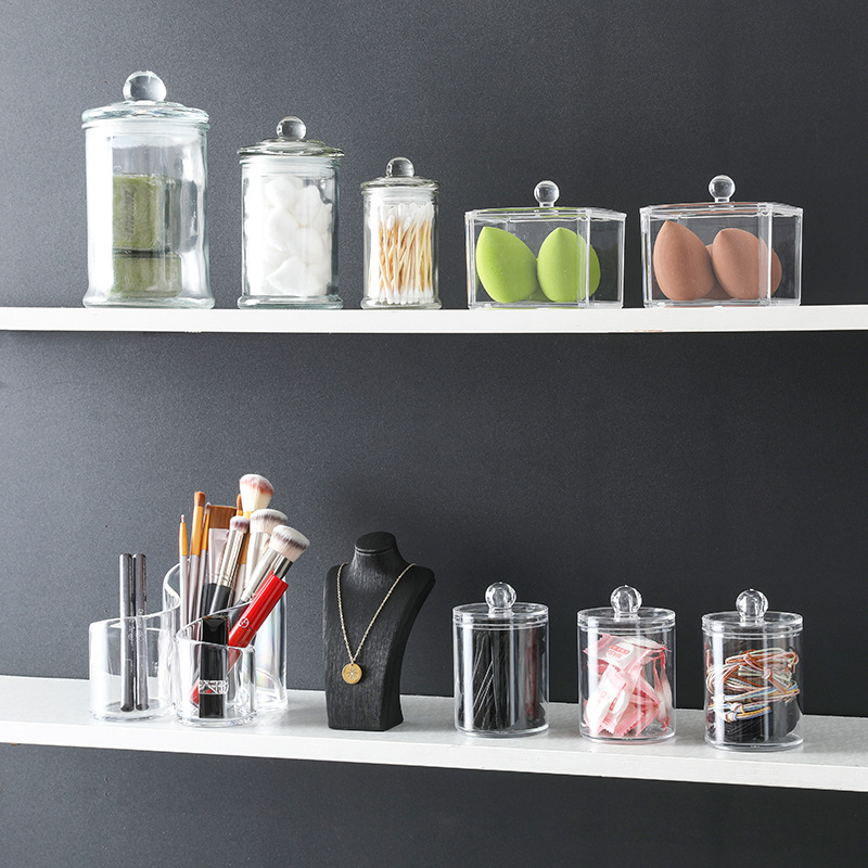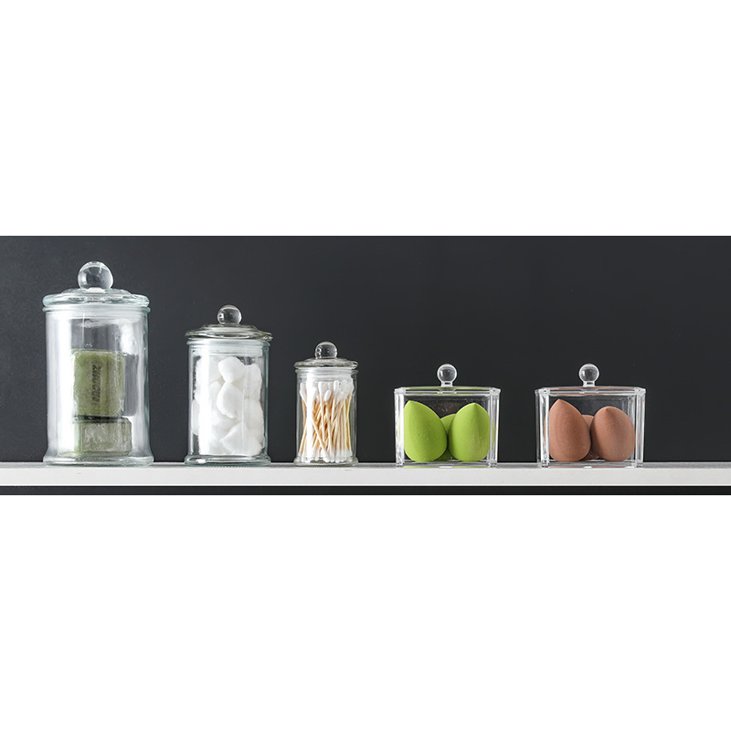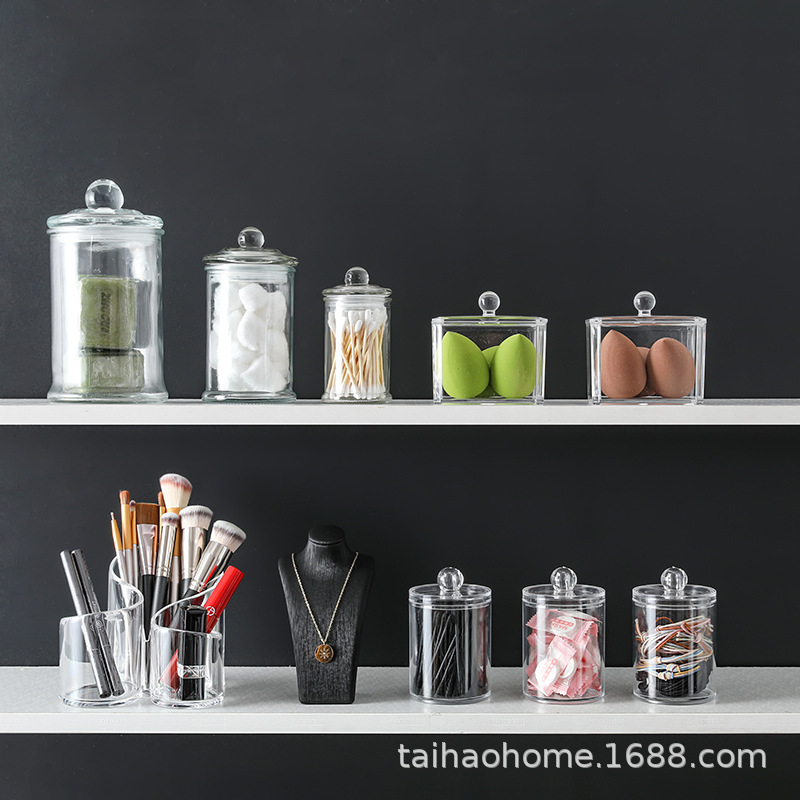 모델 룸 화장실 장식품 메이크업 시리즈 액세서리 작은 유리 저장 항아리 면봉 화장품 용품 보관 부드러운 옷스토어 가기