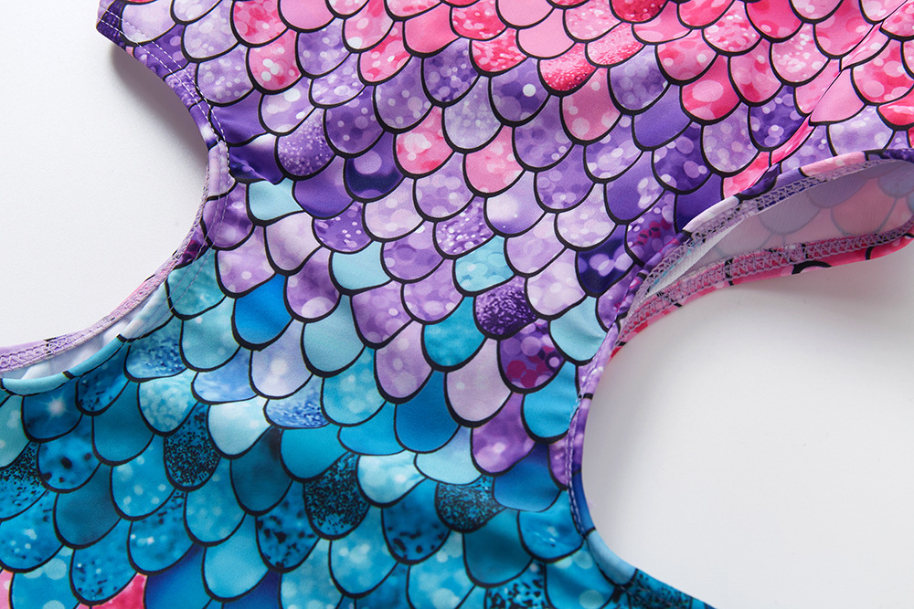 스팟 새 수영복 3~12세 어린이 그라데이션 물고기 비늘 여아 수영복 올인원 아동 수영복