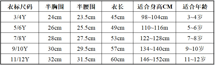 适合3~12岁女童
