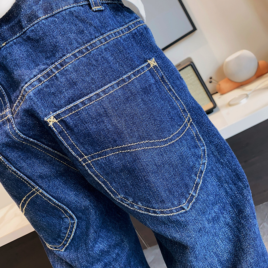2025 가을 겨울 신상 아동복 큰 주머니 슬림핏 청바지 남아 여아용 면 캐주얼 바지스토어 가기