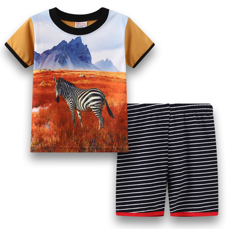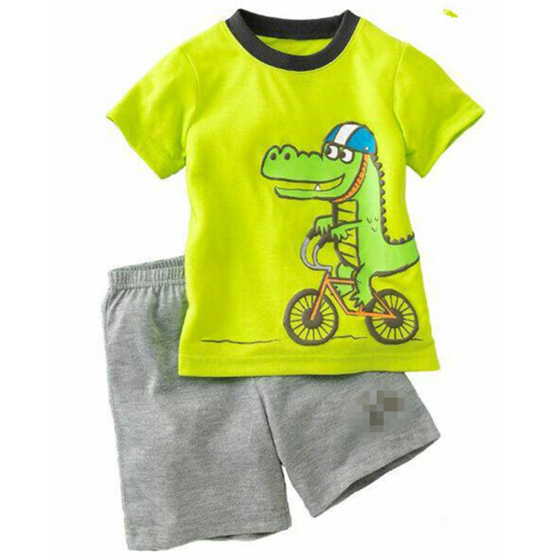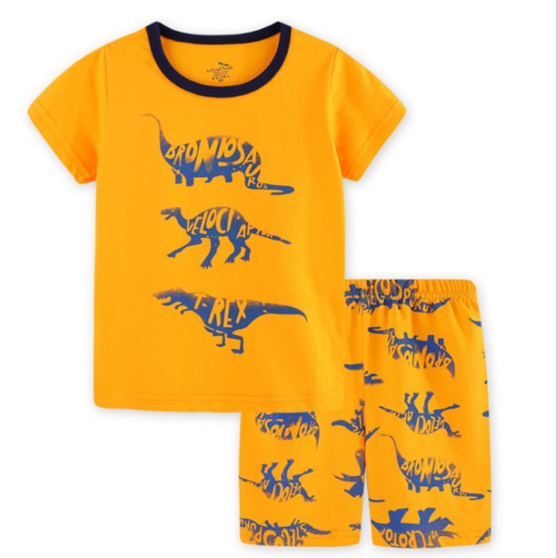 2025 남아 여름 만화 공룡 프린트 반팔 유아 아동복 신상 티셔츠 캐주얼 투피스 도매