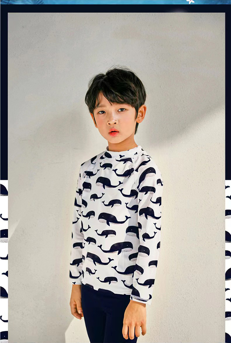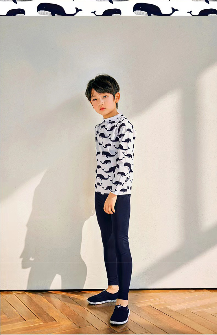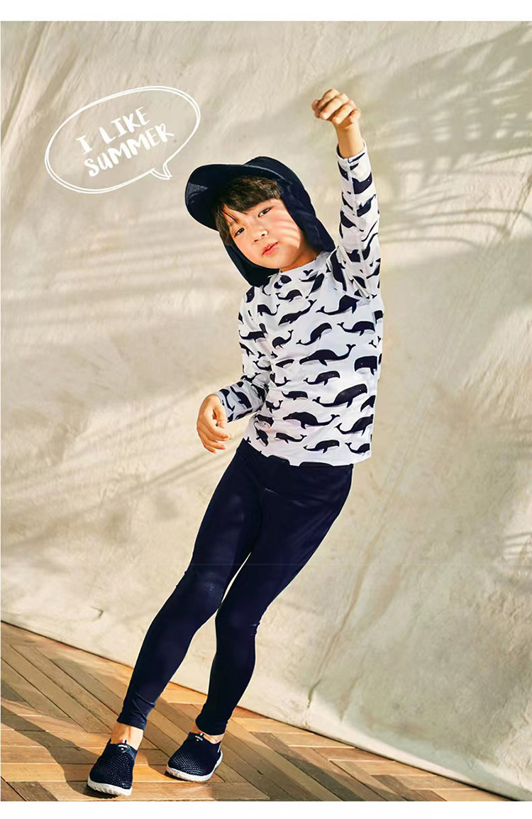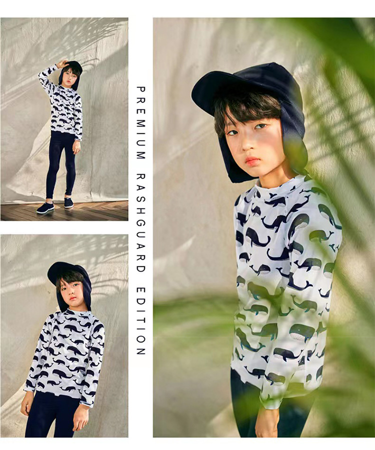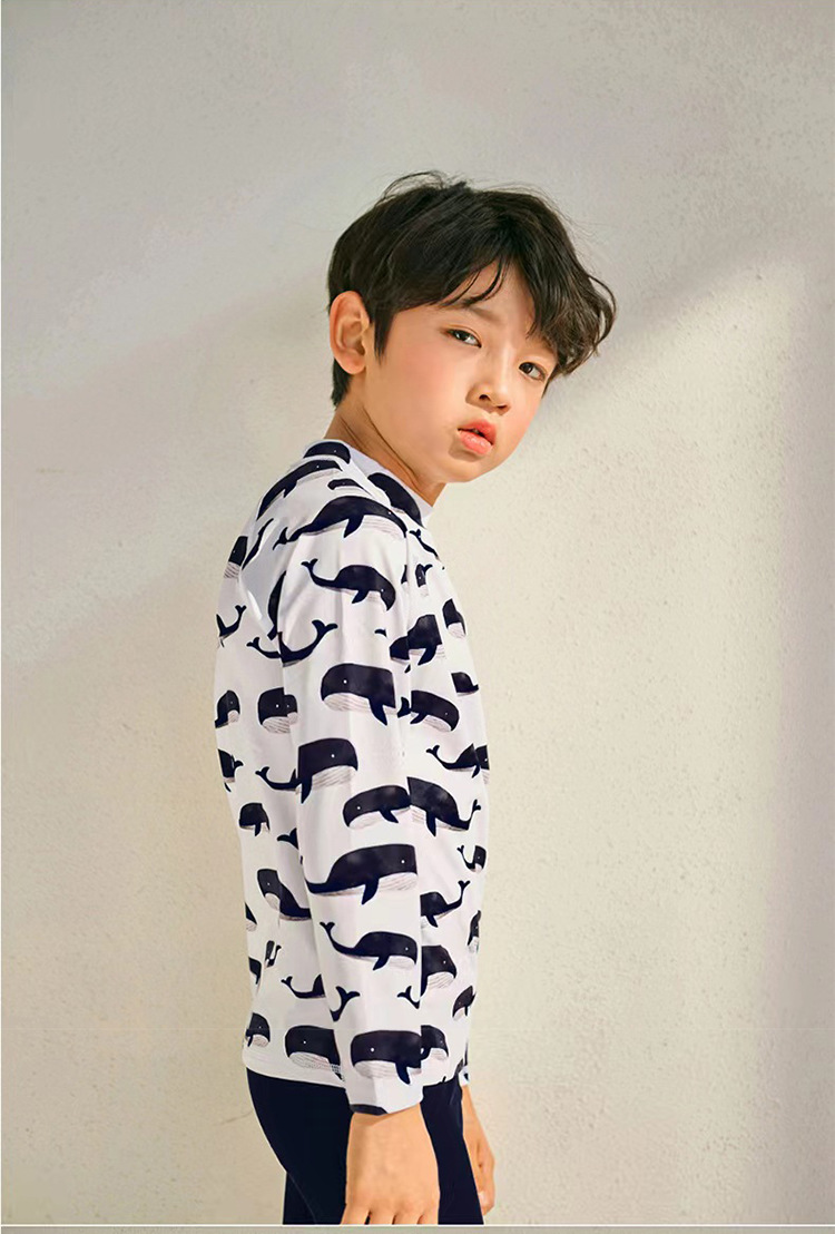 2023 새로운 한국 어린이 분할 수영복 소년 긴 소매 중형 및 대형 어린이 아기 자외선 차단제 속건 온천 수영복