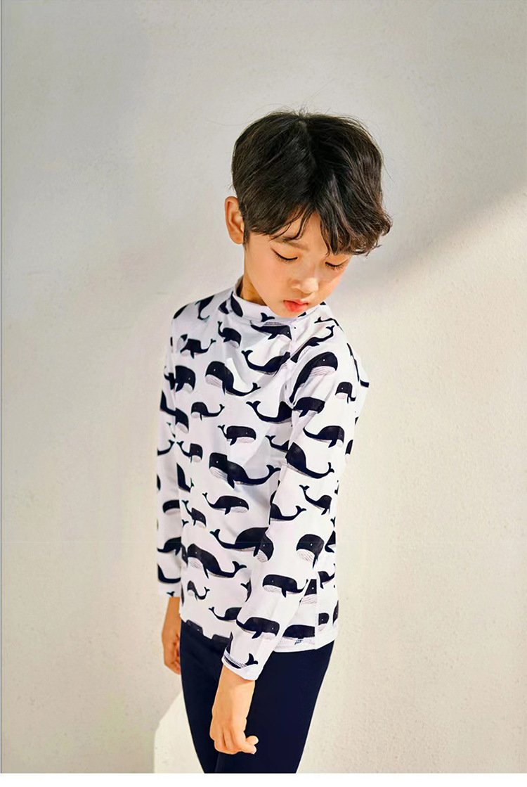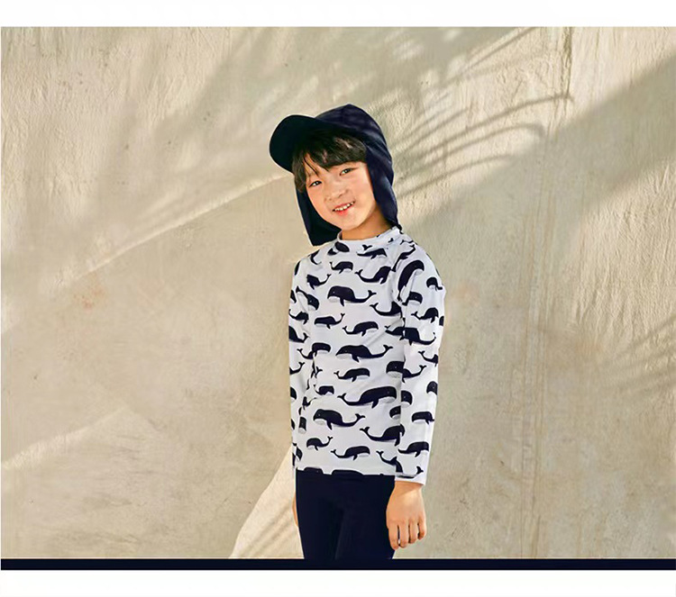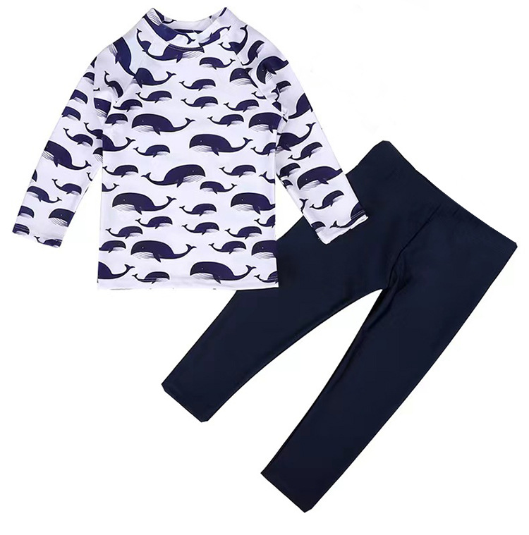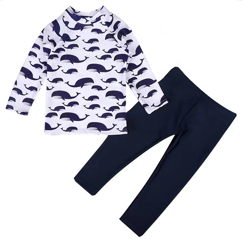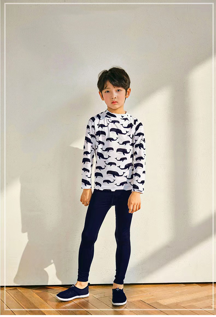 2023 새로운 한국 어린이 분할 수영복 소년 긴 소매 중형 및 대형 어린이 아기 자외선 차단제 속건 온천 수영복