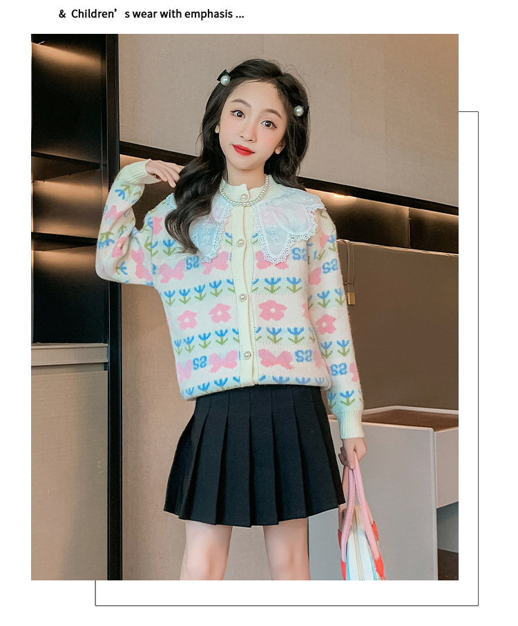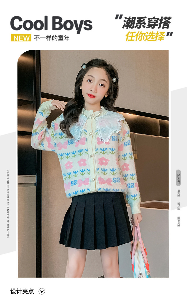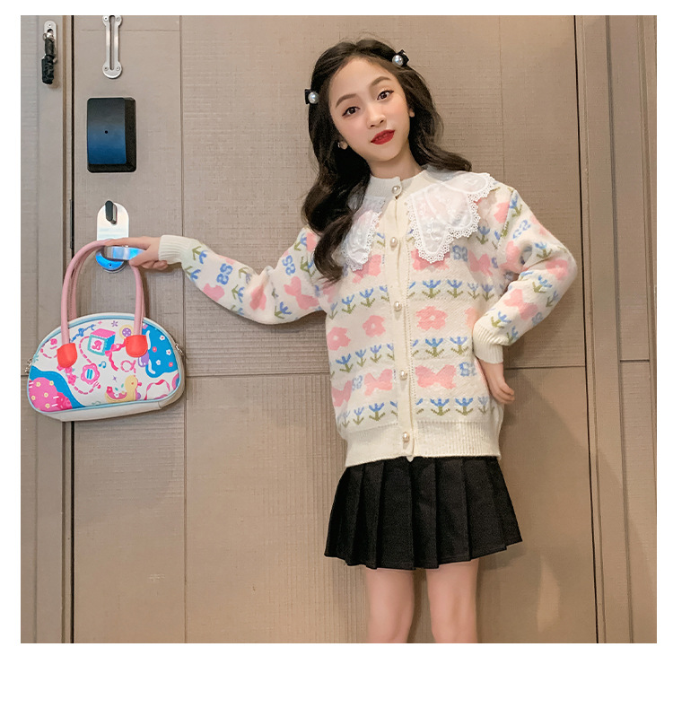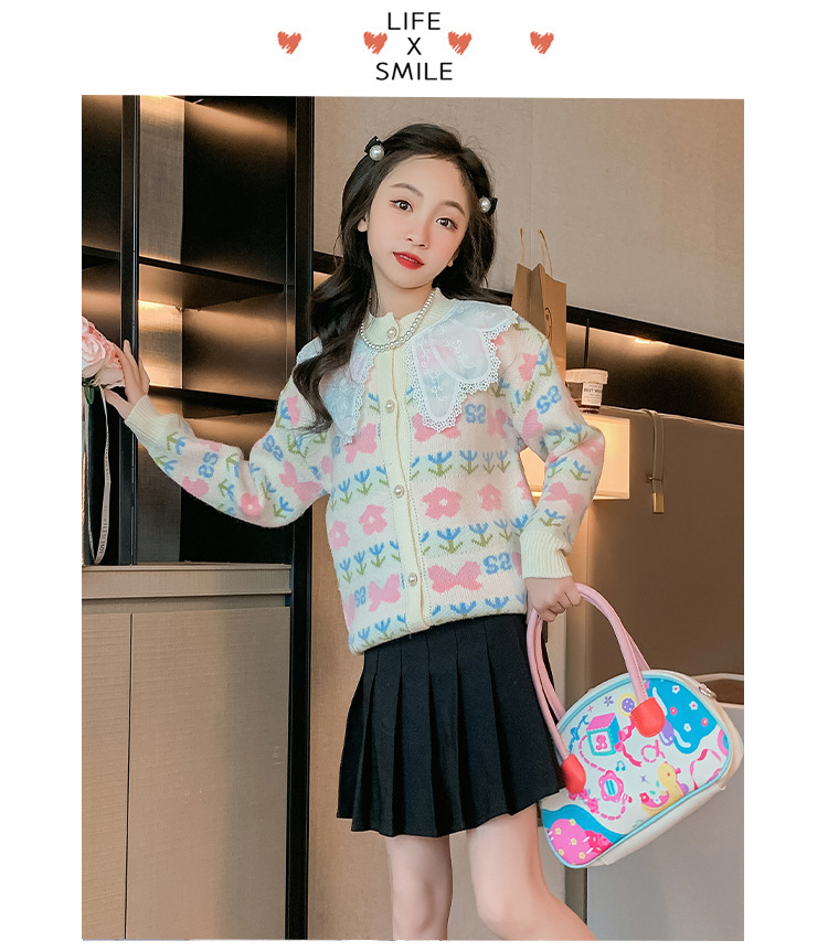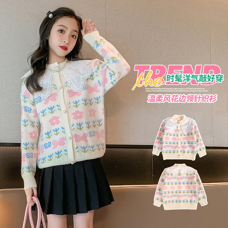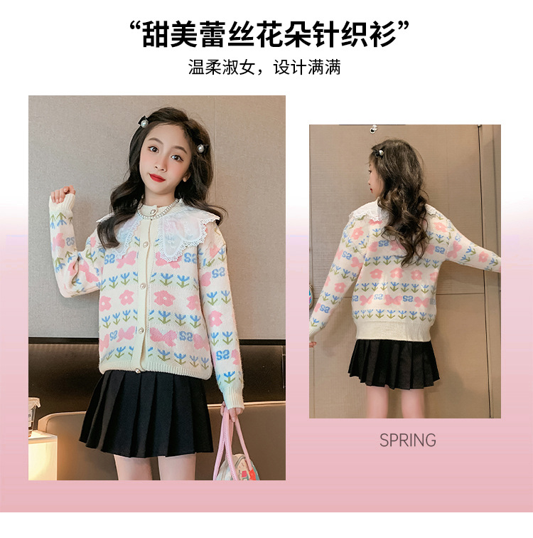여아 스웨터 가디건 2025 봄 신작 아동 한국식 서양식 상의 중대형 아동 봄, 가을 니트 재킷 유행