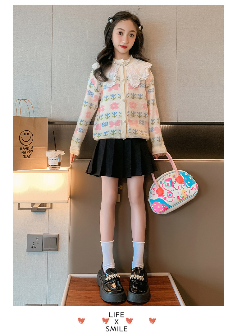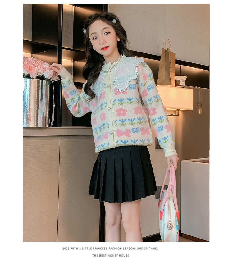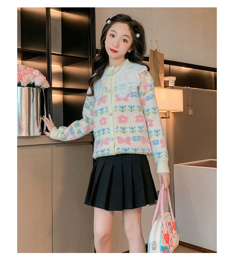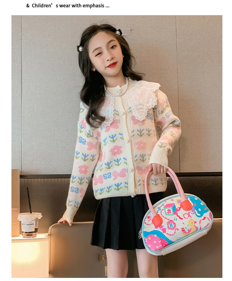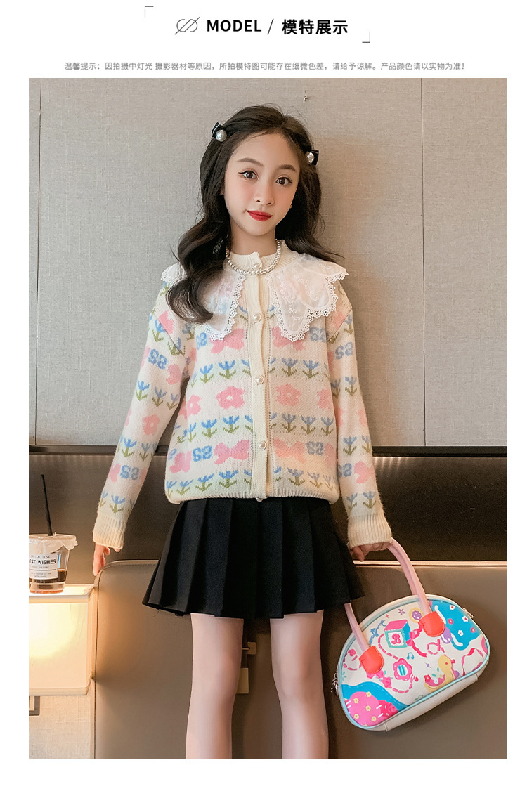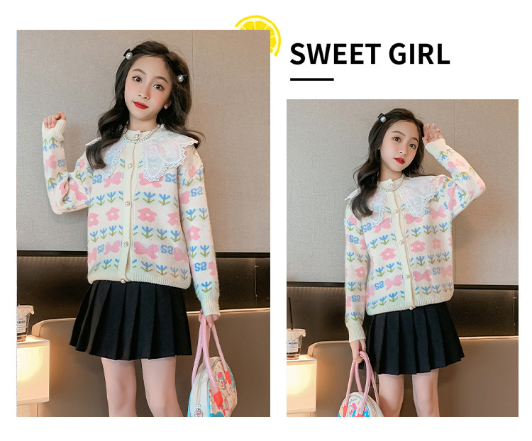 여아 스웨터 가디건 2025 봄 신작 아동 한국식 서양식 상의 중대형 아동 봄, 가을 니트 재킷 유행