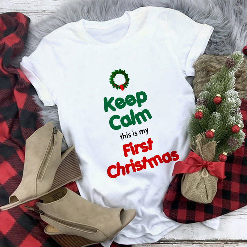 크로스 보더 메리 크리스마스 2022 메리 크리스마스 티셔츠 탑 여성용 프린트 반팔스토어 가기