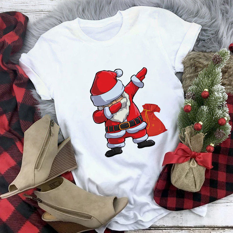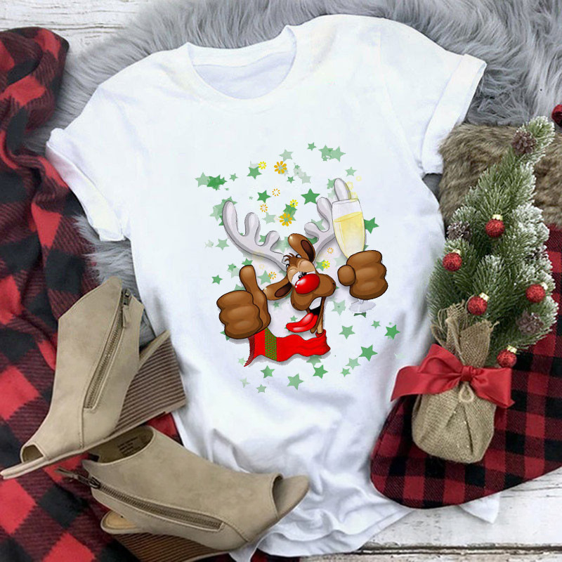 크로스 보더 메리 크리스마스 2022 메리 크리스마스 티셔츠 탑 여성용 프린트 반팔