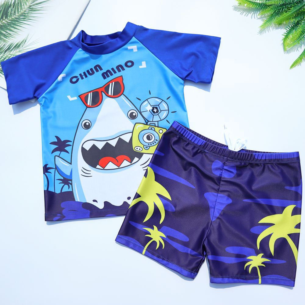 • 新款儿童泳衣男童中大童学生男孩高弹分体速干游泳衣温泉泳装批发