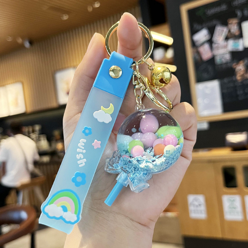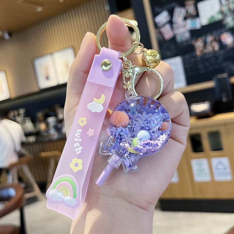 오일 인 퀵샌드 롤리팝 열쇠 고리 펜던트 여성용 귀여운 절묘한 책가방 펜던트 자동차 열쇠 고리 보석 도매스토어 가기