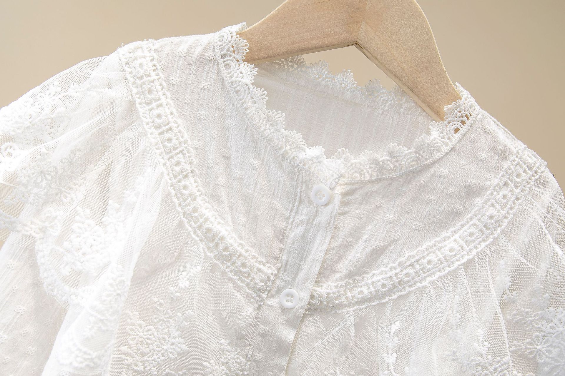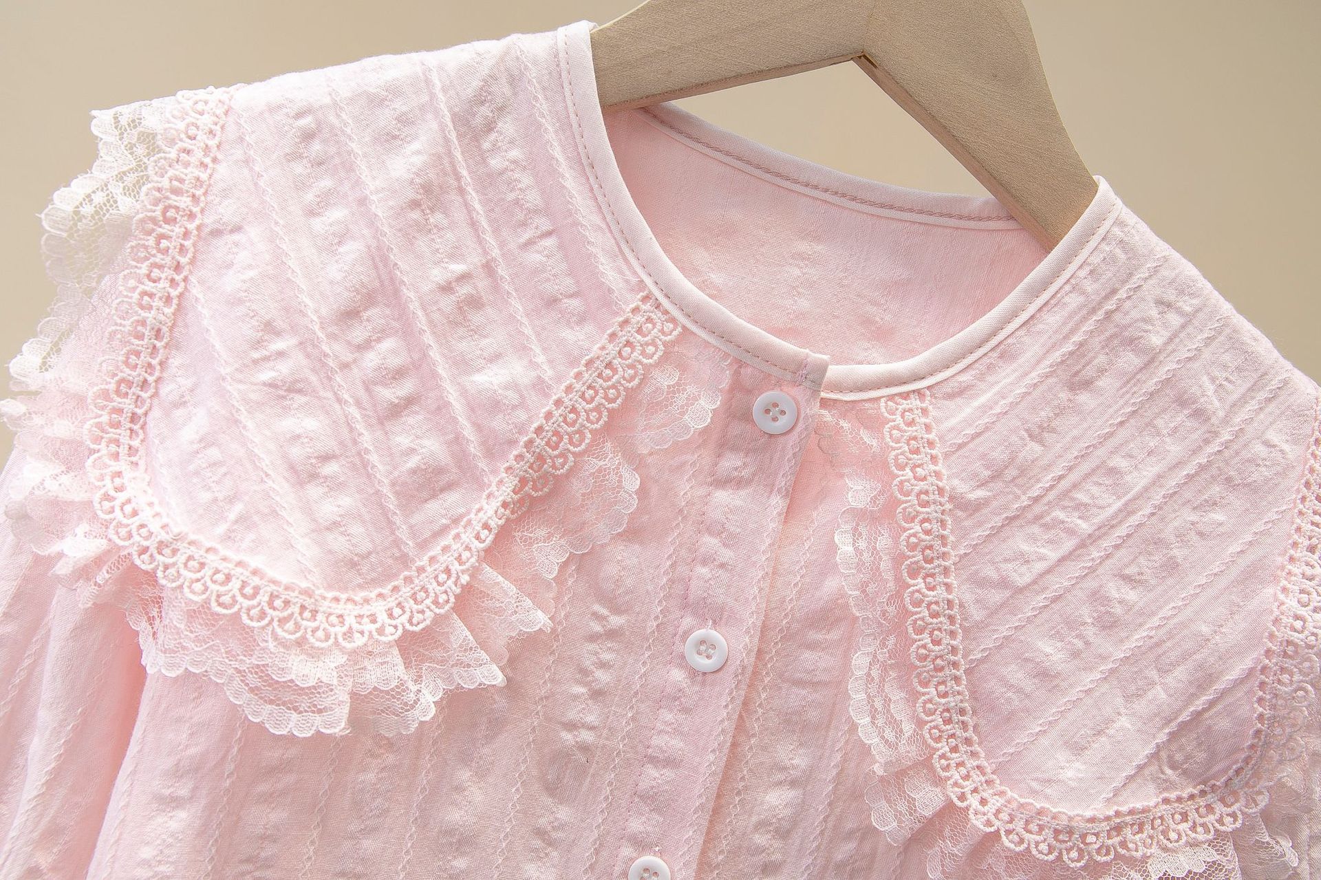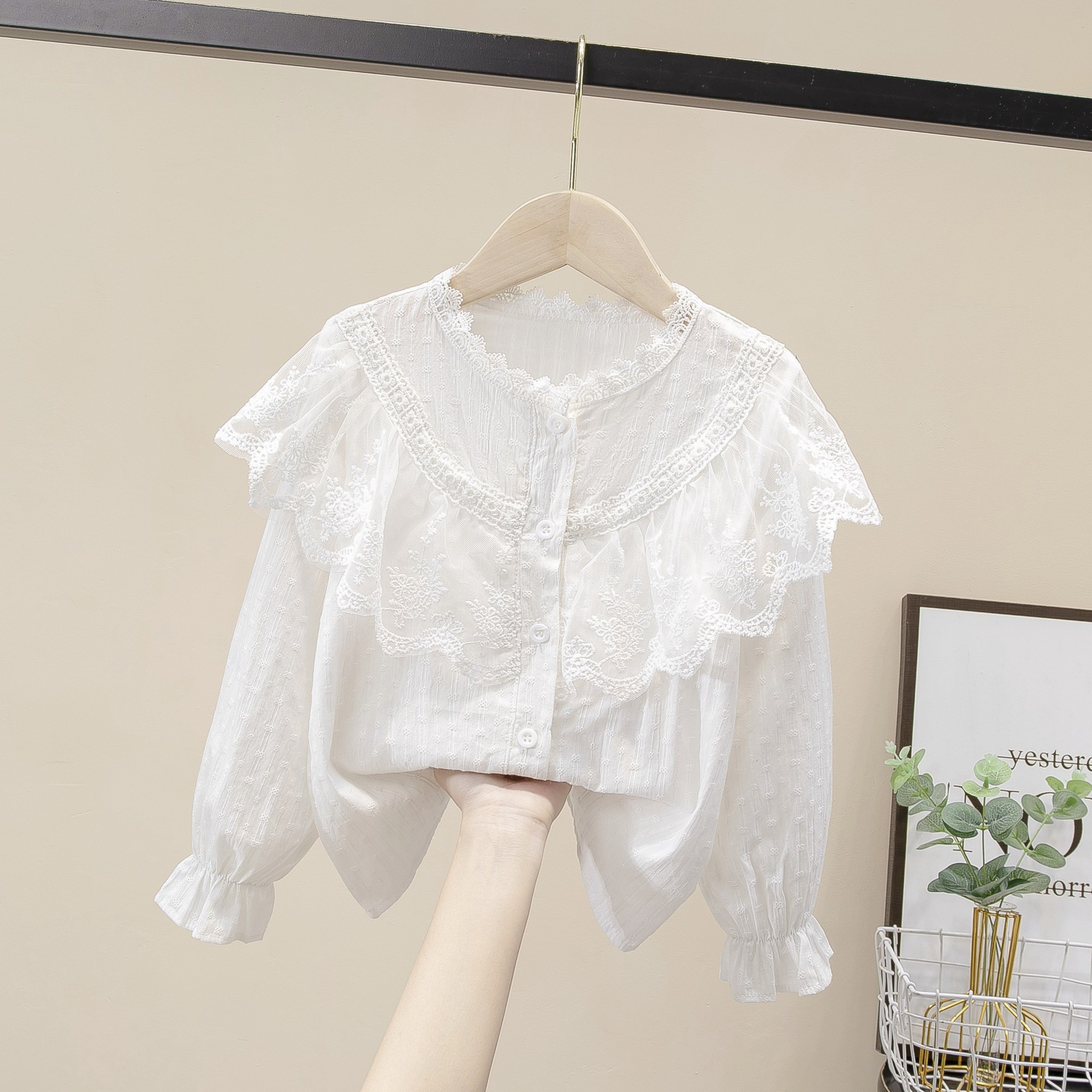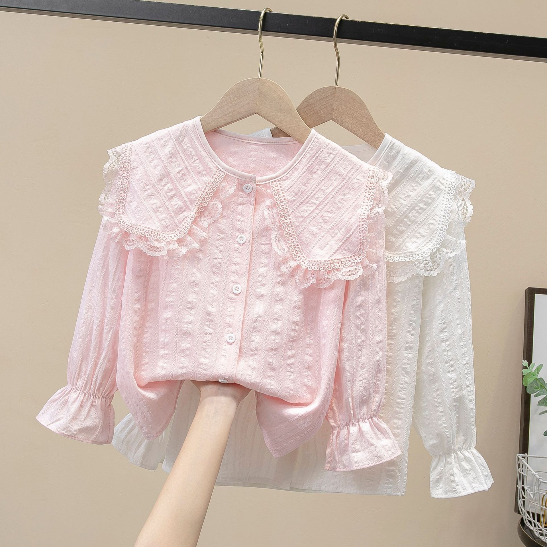 여아 공주 레이스 탑 셔츠 2023 봄 새로운 한국 아동복 어린이 비행 슬리브 인형 셔츠