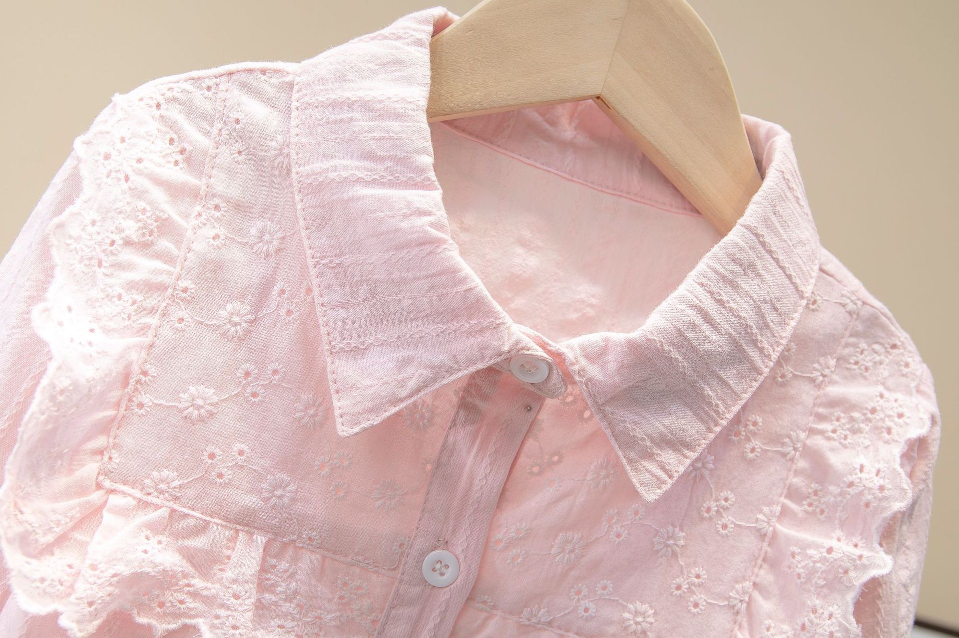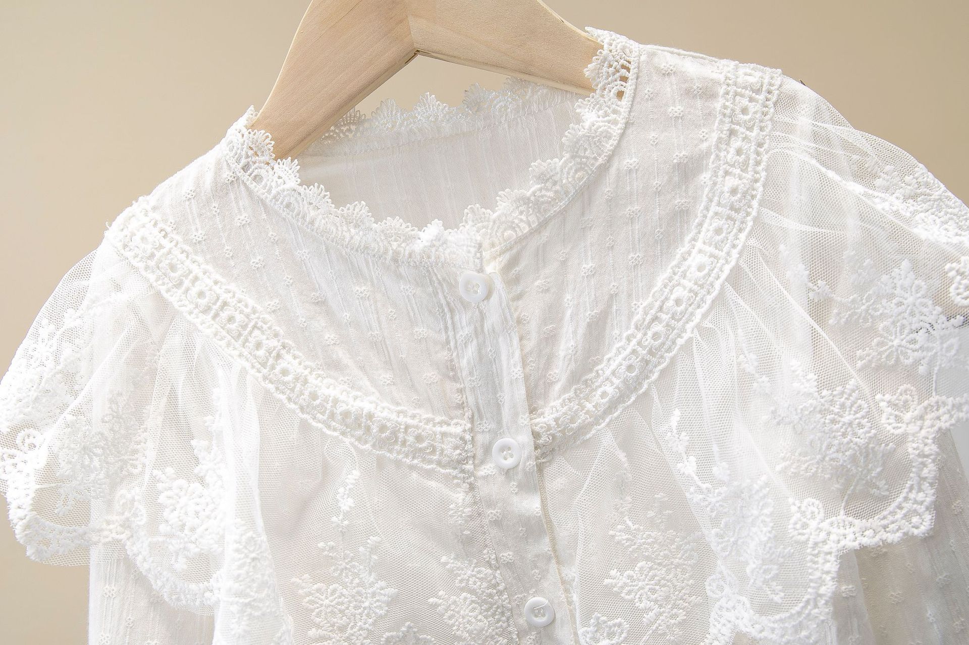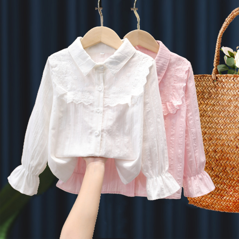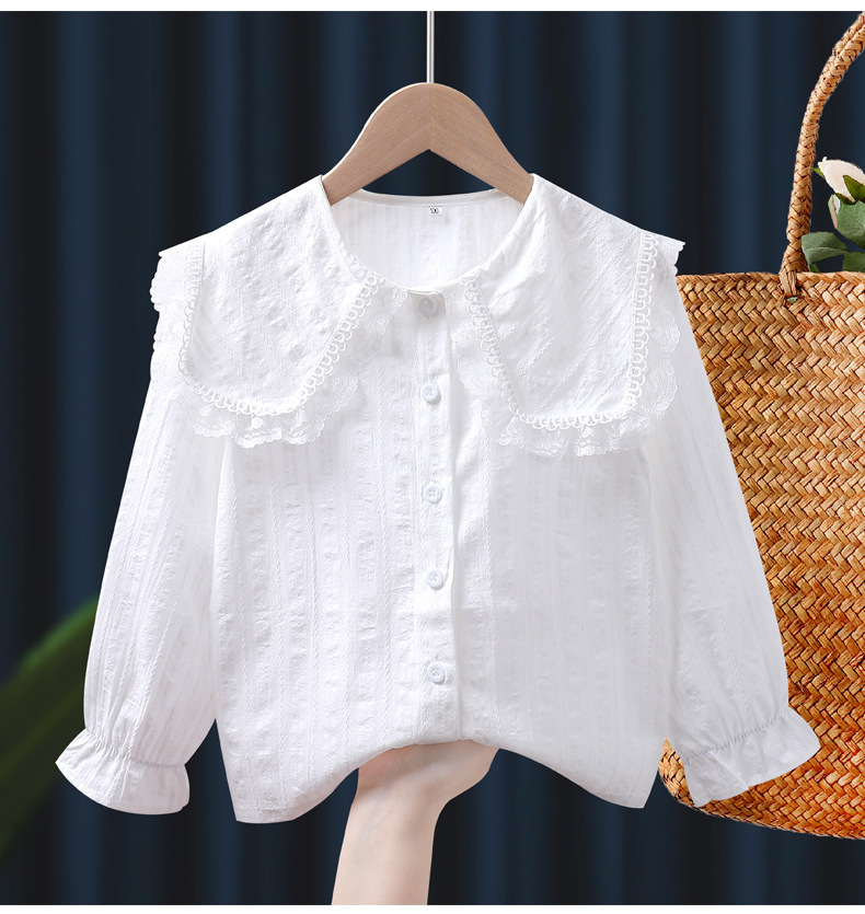 여아 공주 레이스 탑 셔츠 2023 봄 새로운 한국 아동복 어린이 비행 슬리브 인형 셔츠