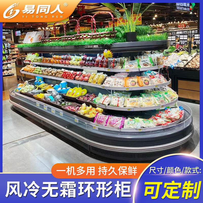 상업용 에어커튼 캐비닛 타원형 과일 야채 우유 신선 보관 캐비닛 슈퍼마켓 음료 주스 냉장 진열 캐비닛스토어 가기