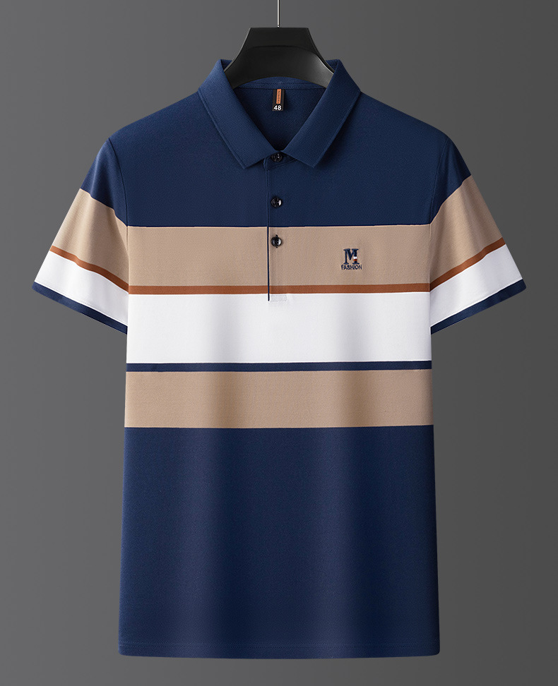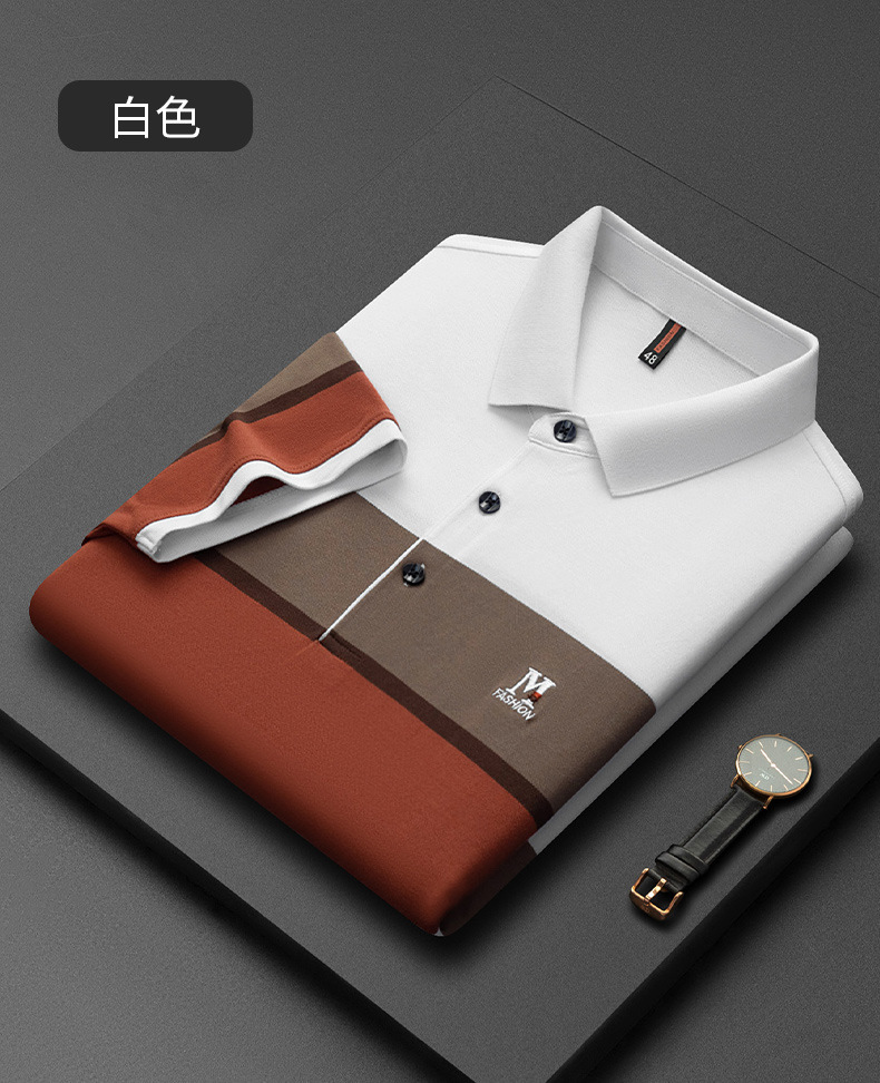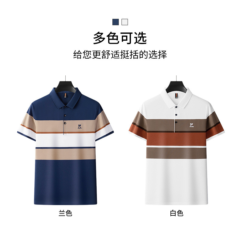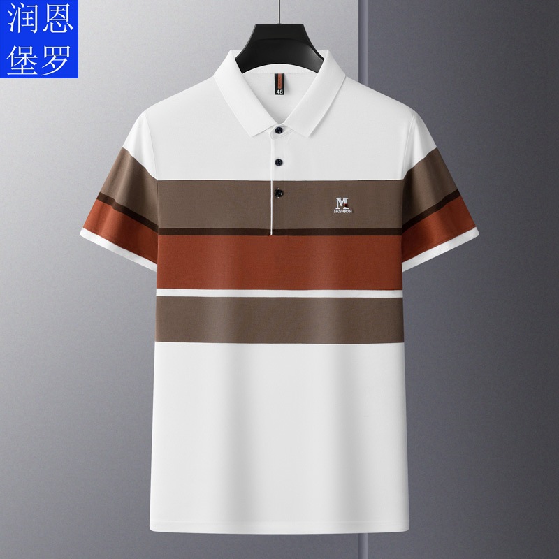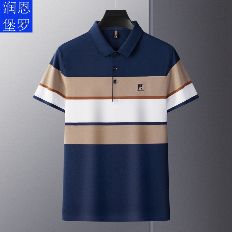 Runenbaoluo 국경 독점 스트라이프 남성 반팔 폴로 셔츠 자수 옷깃 중년 남성 폴로 셔츠