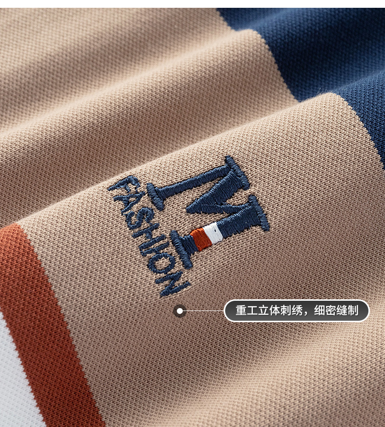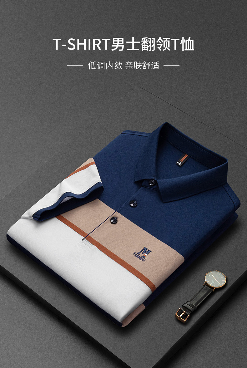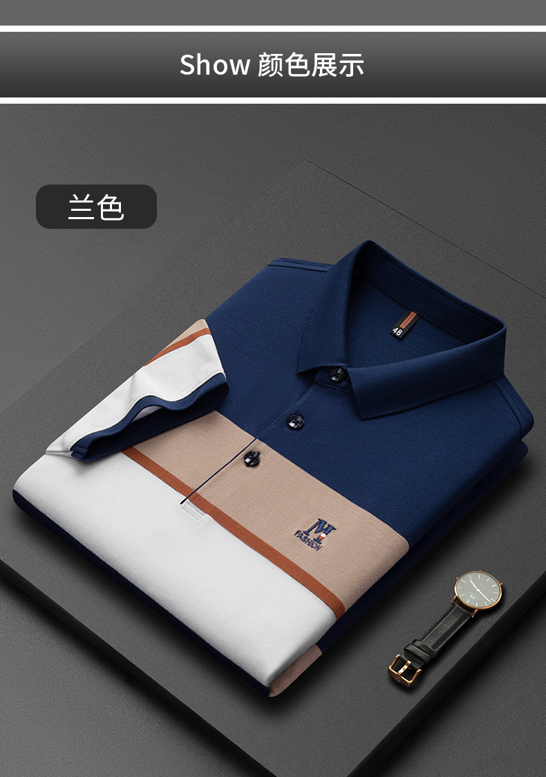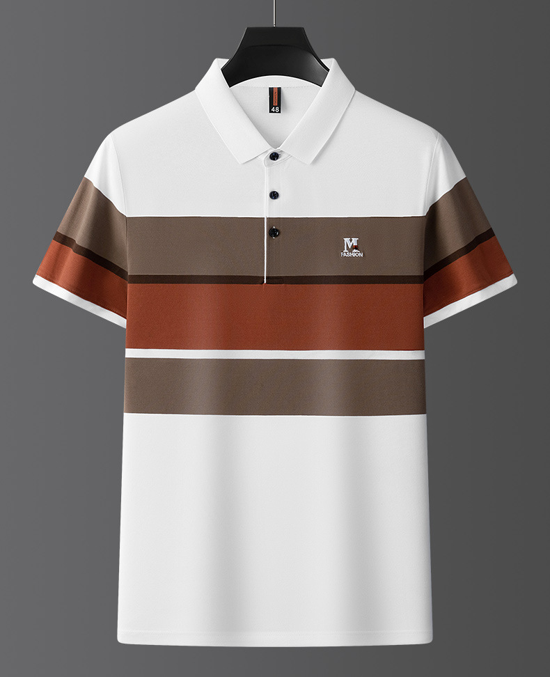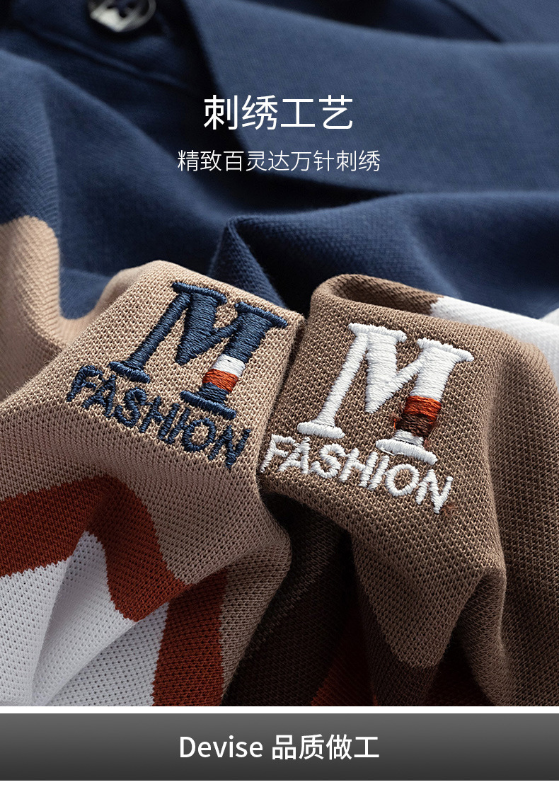 Runenbaoluo 국경 독점 스트라이프 남성 반팔 폴로 셔츠 자수 옷깃 중년 남성 폴로 셔츠