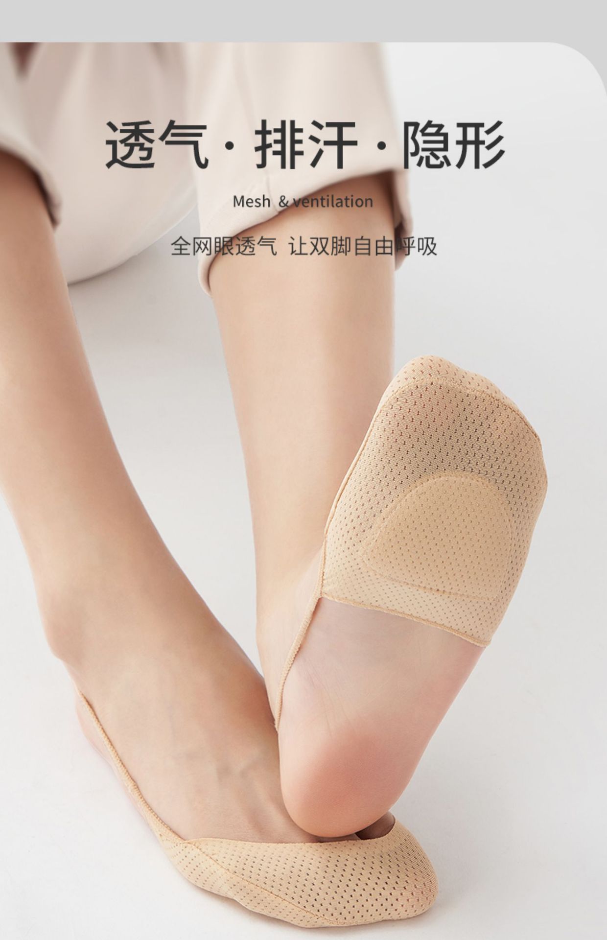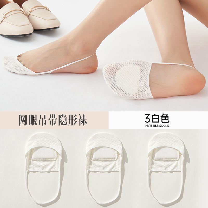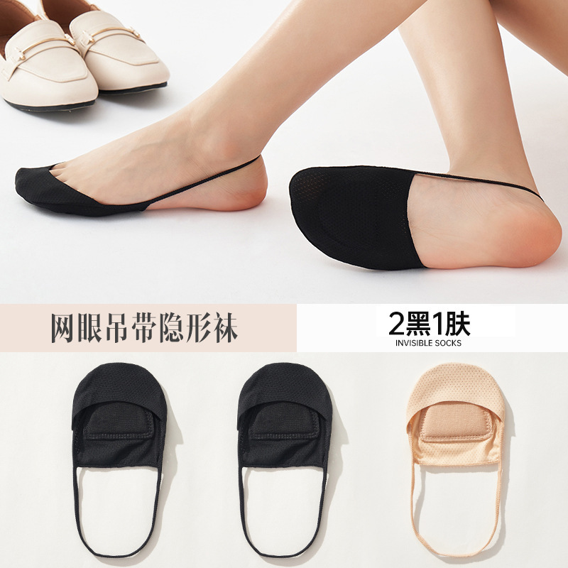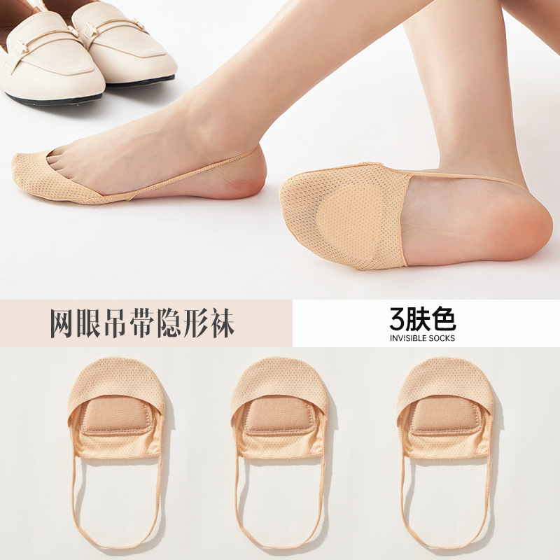 슬링 보이지 않는 양말 여성용 여름 얇은 얕은 얼음 실크 메쉬 면 패드 전면 하프 팜 하이힐 샌들 보트 양말스토어 가기