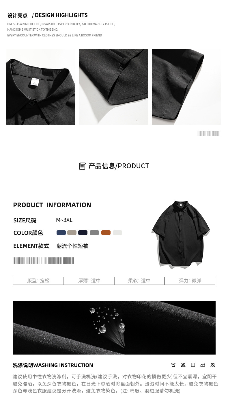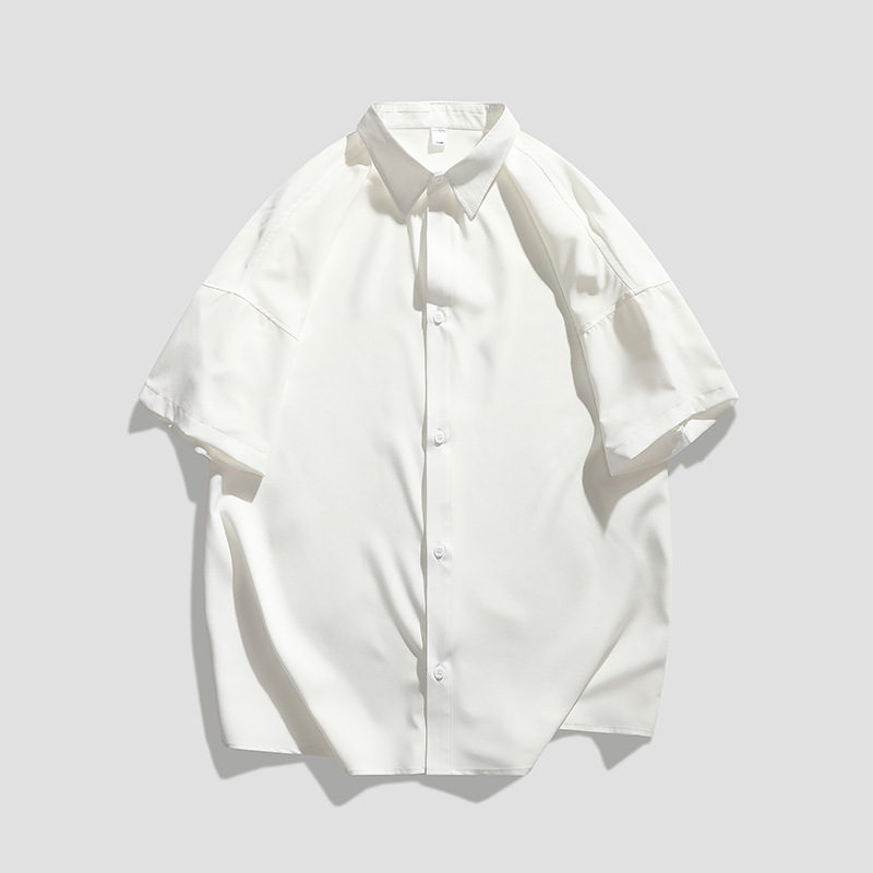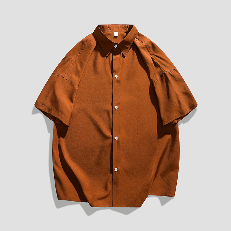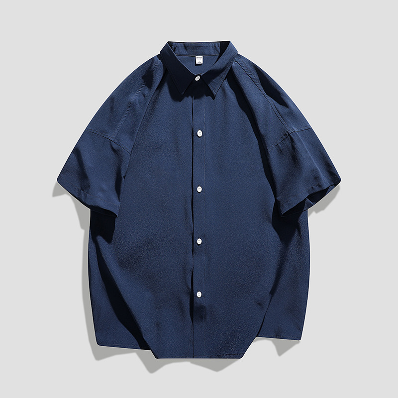 남성용 여름 반팔 셔츠 2024 한국식 루즈하고 멋진 캐주얼 트렌디 아우터 셔츠 남성용 솔리드 컬러 심플 자켓스토어 가기
