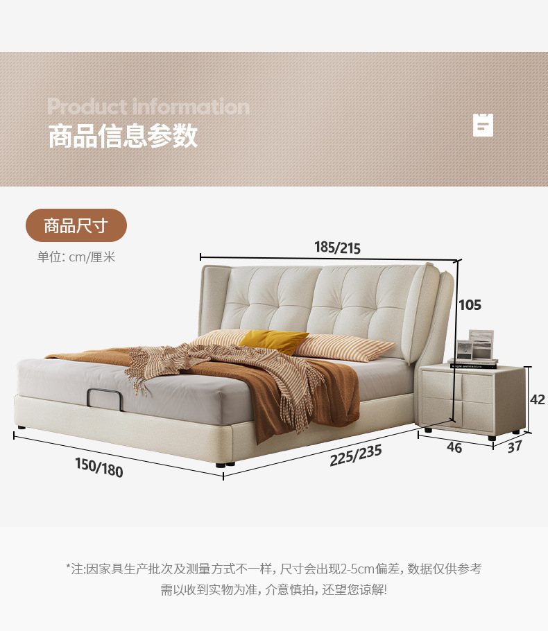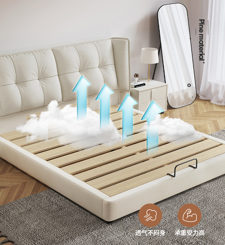 가죽 침대 1.8 m 더블 침대 마스터 침실 크림 스타일 큰 침대 모던 심플 1.5 스토리지 라이트 럭셔리 기술 천 웨딩 침대스토어 가기