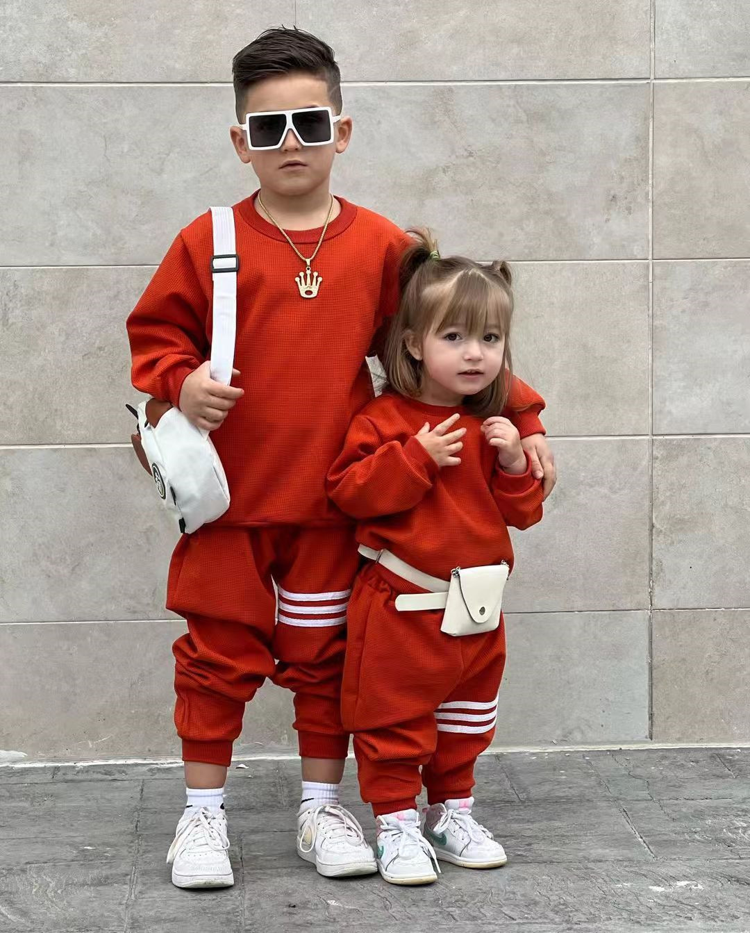 트렌디 한 아동복 세트 소매 줄무늬 긴 소매 세트 스포츠 스타일 대학 패션 스웨터 잘 생긴 바 야구 유니폼