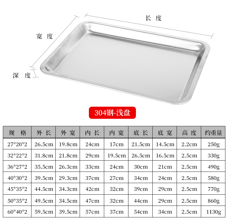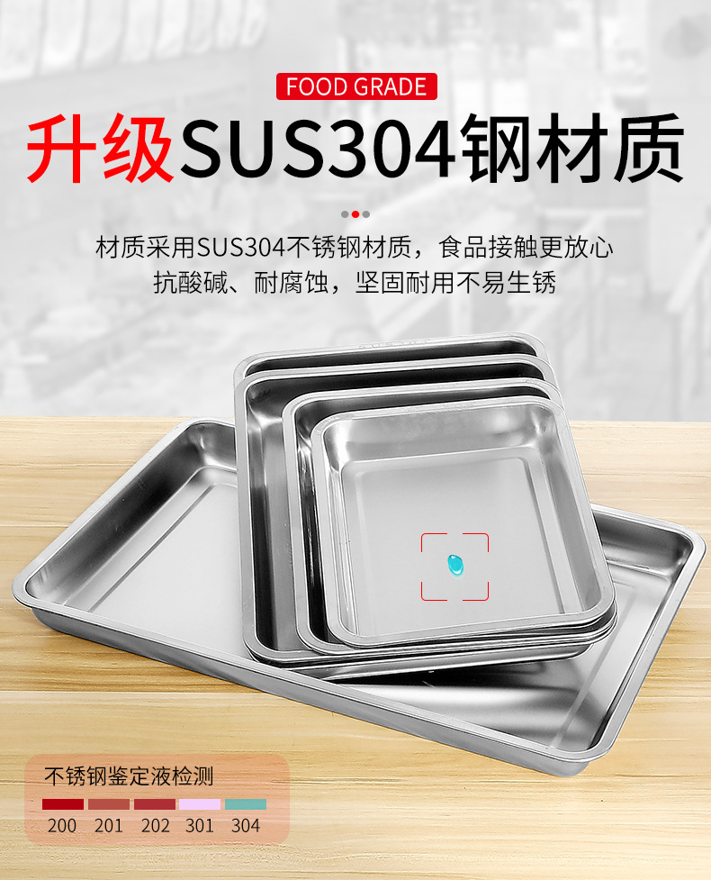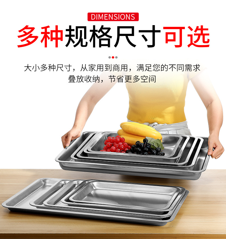 304 스테인리스 스틸 밀크피즈 전용 평평한 사각 접시, 바비큐 고기 접시, 찜밥 접시, 야채 접시, 식사 접시, 평평한 접시스토어 가기