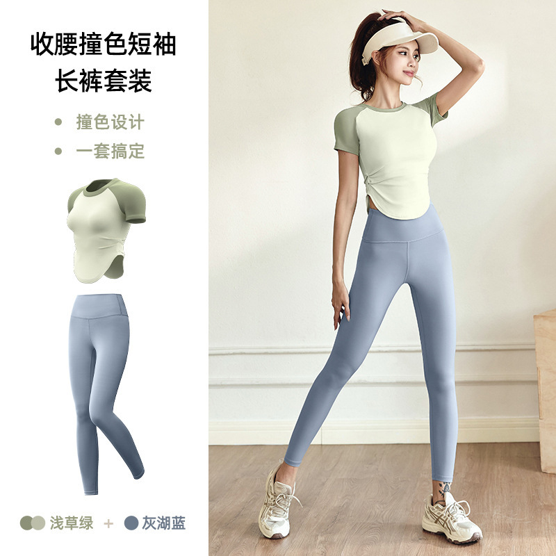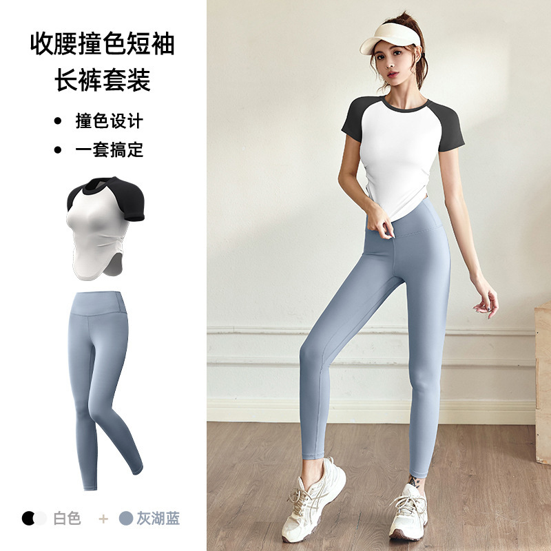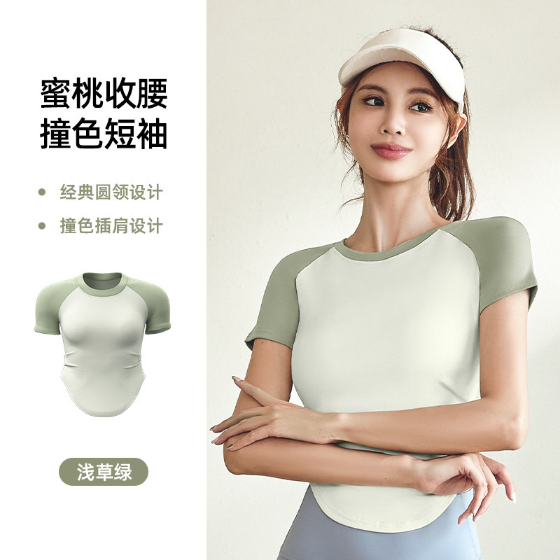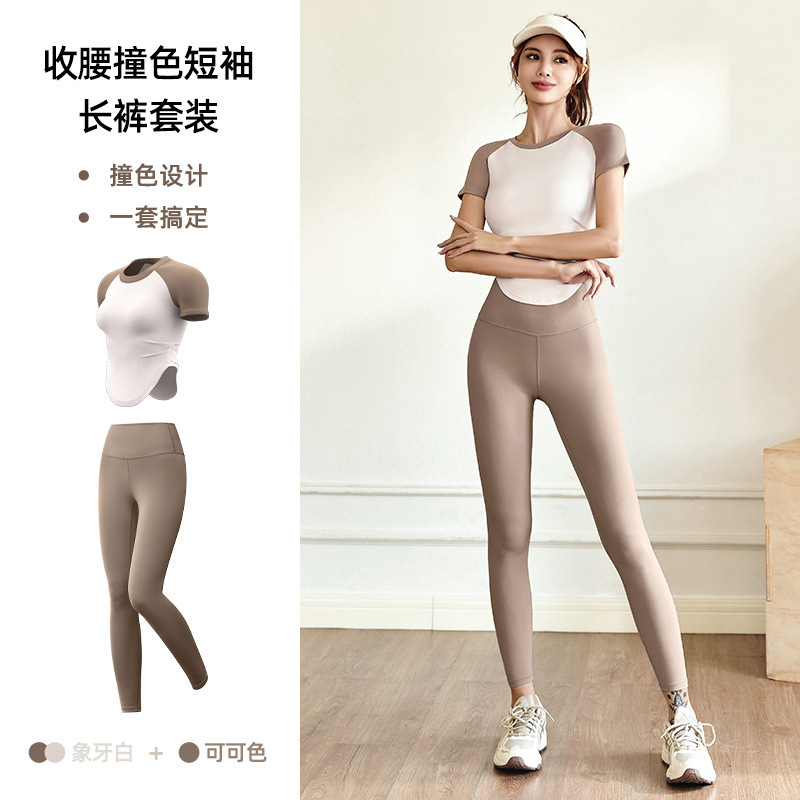 여성용 슬림핏 누드톤 요가복 세트, 스포츠 피트니스 야외 활동용 상의 반팔