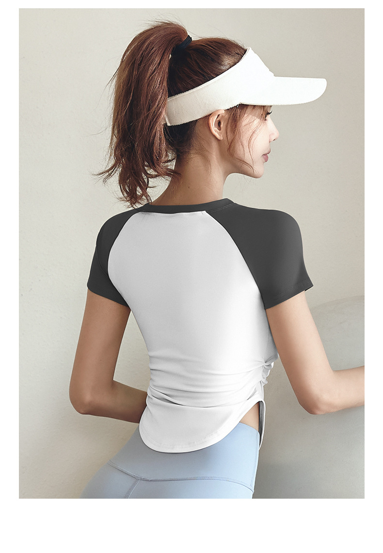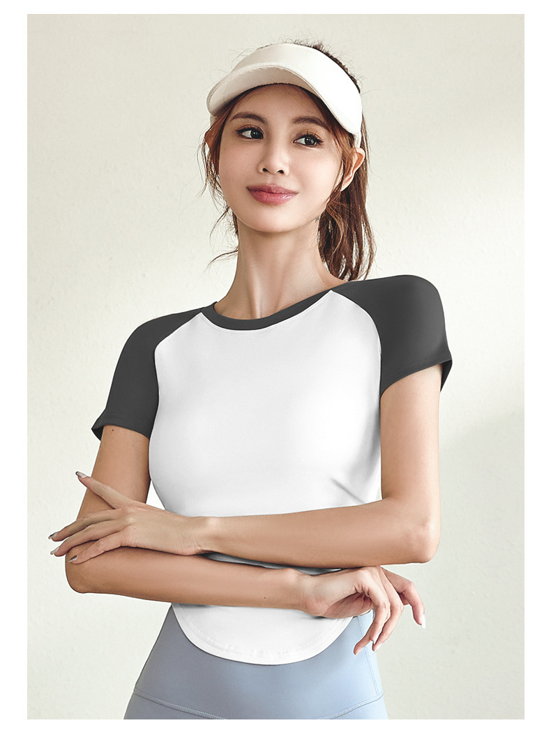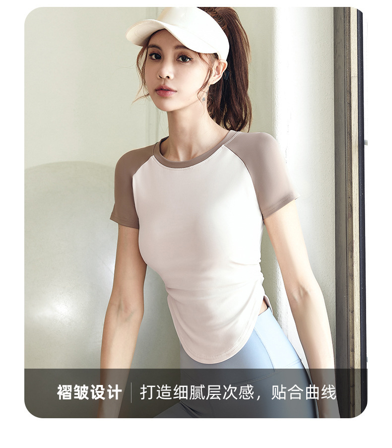여성용 슬림핏 누드톤 요가복 세트, 스포츠 피트니스 야외 활동용 상의 반팔스토어 가기