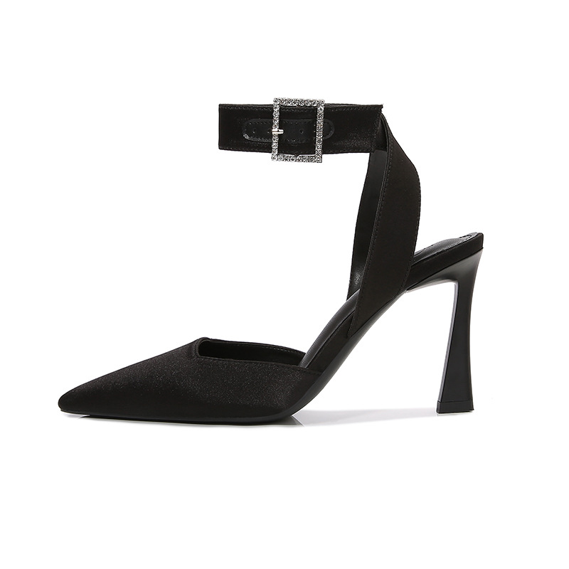 2025 하이힐 여성 스틸레토 패션 새틴 다용도 작은 사각형 발가락 블랙 나이트 클럽 섹시한 작은 향기로운 여성 샌들