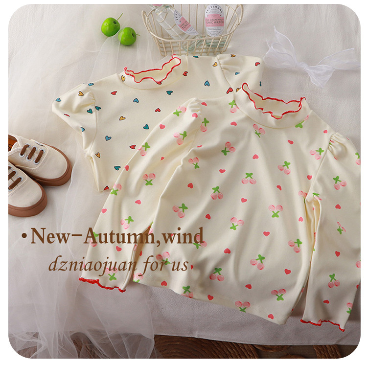 2023 새로운 가을과 겨울 소녀 승무원 목 바닥 셔츠 어린이 재킷 남성 아기 바닥 셔츠의 한국어 버전 머리카락 세대스토어 가기