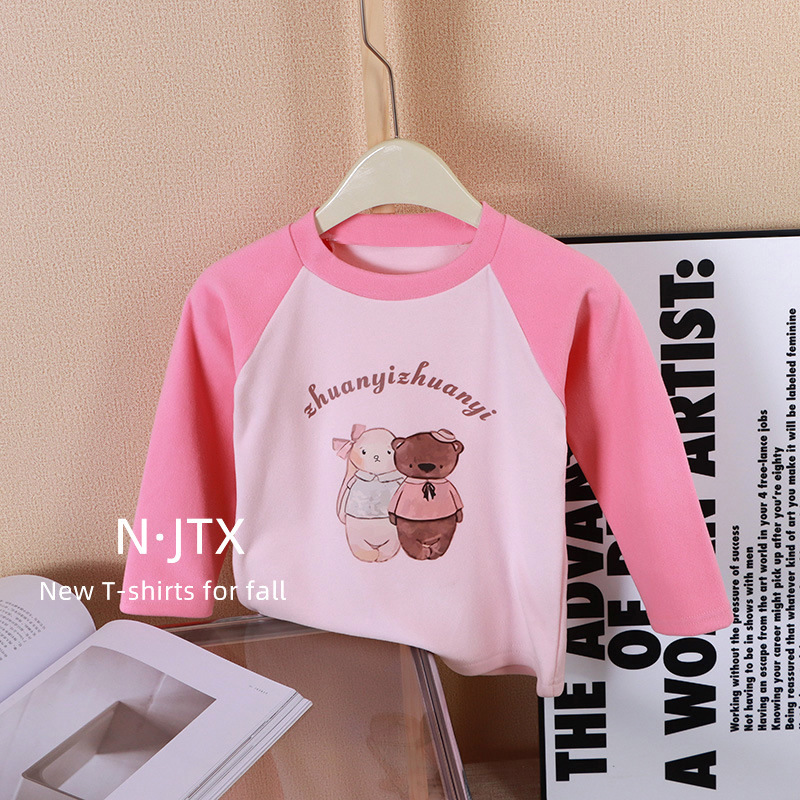 2023 새로운 가을과 겨울 소녀 승무원 목 바닥 셔츠 어린이 재킷 남성 아기 바닥 셔츠의 한국어 버전 머리카락 세대