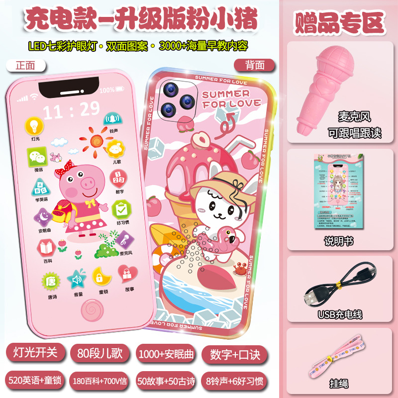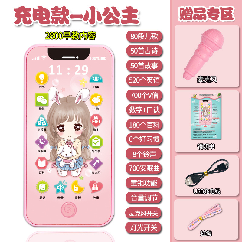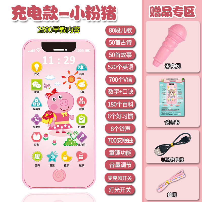 시뮬레이션 조기 교육 터치 스크린 휴대 전화 물린 충전식 아기 교육 완구 어린이 소년 소녀 아기 음악 전화
