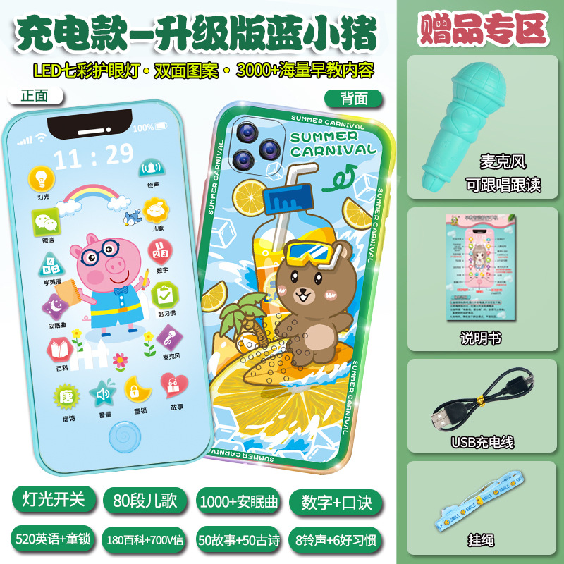 • [3000 콘텐츠 충전] 다채로운 눈 보호 램프 양면 블루 피그